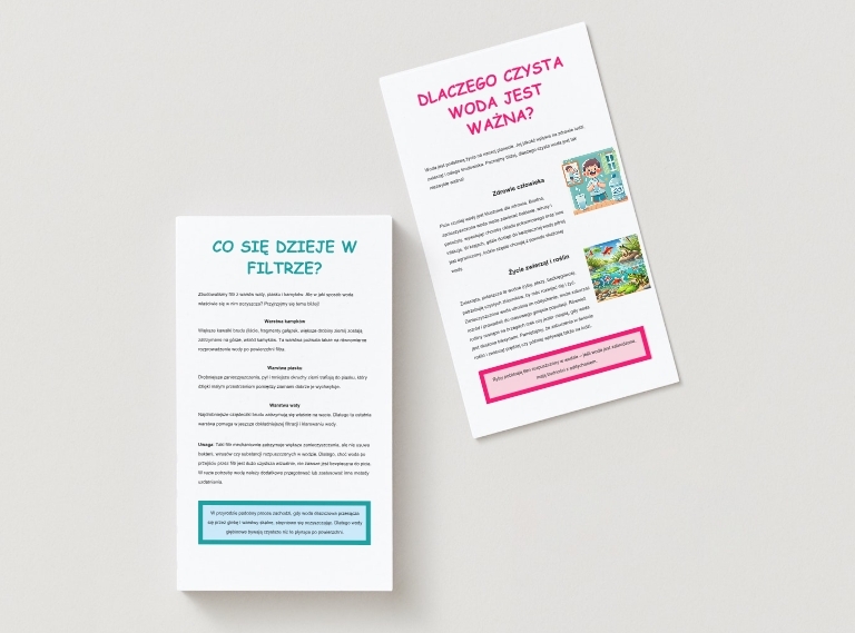Poznaj innowacyjny materiał dydaktyczny, który w przystępny sposób wprowadzi młodych odkrywców w temat ochrony środowiska i znaczenia czystej wody w naszym życiu. Dzięki tej wieloetapowej broszurze dzieci samodzielnie (lub pod opieką nauczyciela/rodzica) zbudują prosty filtr z ogólnodostępnych materiałów i przekonają się, jak w przybliżeniu działa naturalna filtracja w przyrodzie.