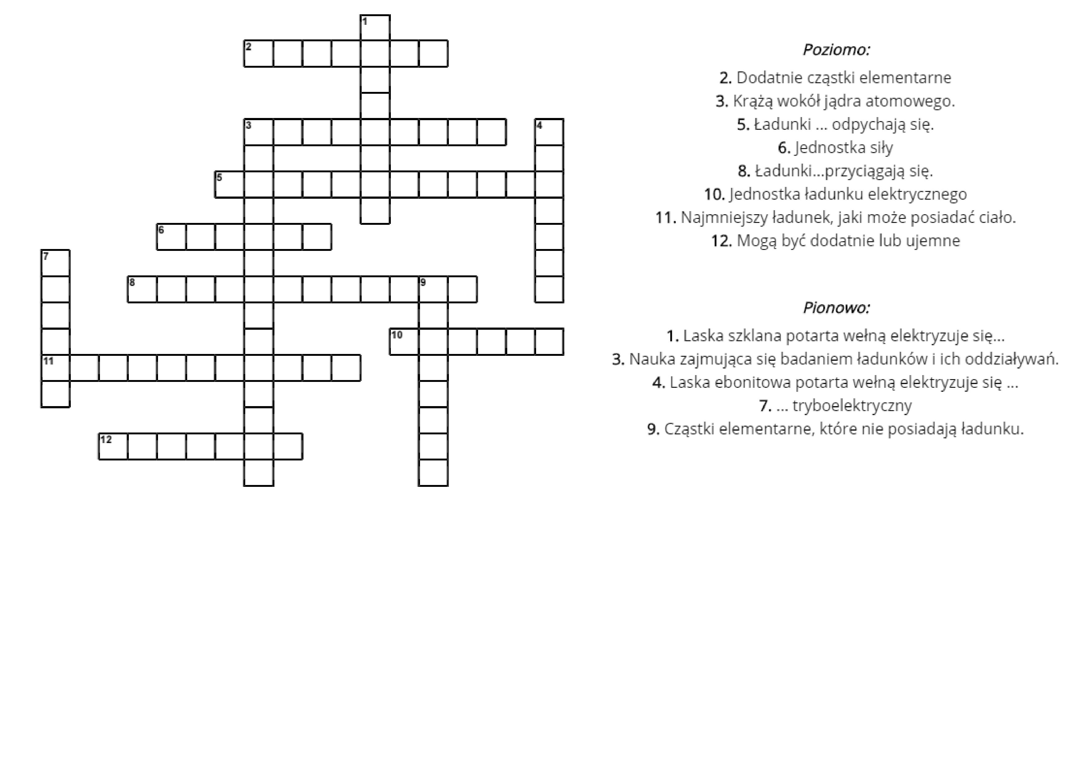 Krzyżówka z elektrostatyki dla uczniów szkoły podstawowej.