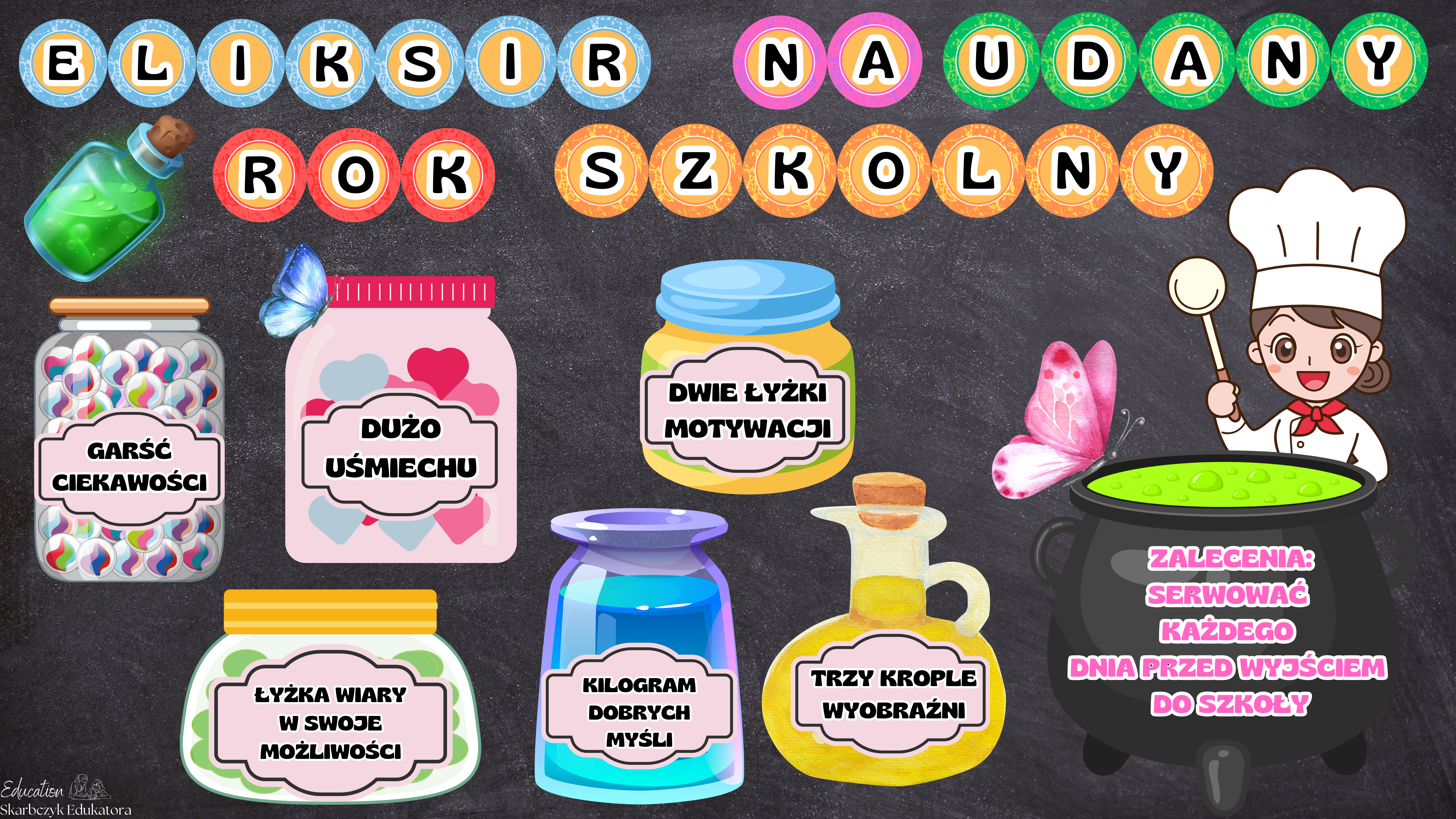„Eliksir na udany rok szkolny” to 23stronicowy zestaw w formacie PDF, który pomoże uczniom rozpocząć rok szkolny z pozytywną energią i wiarą w siebie.