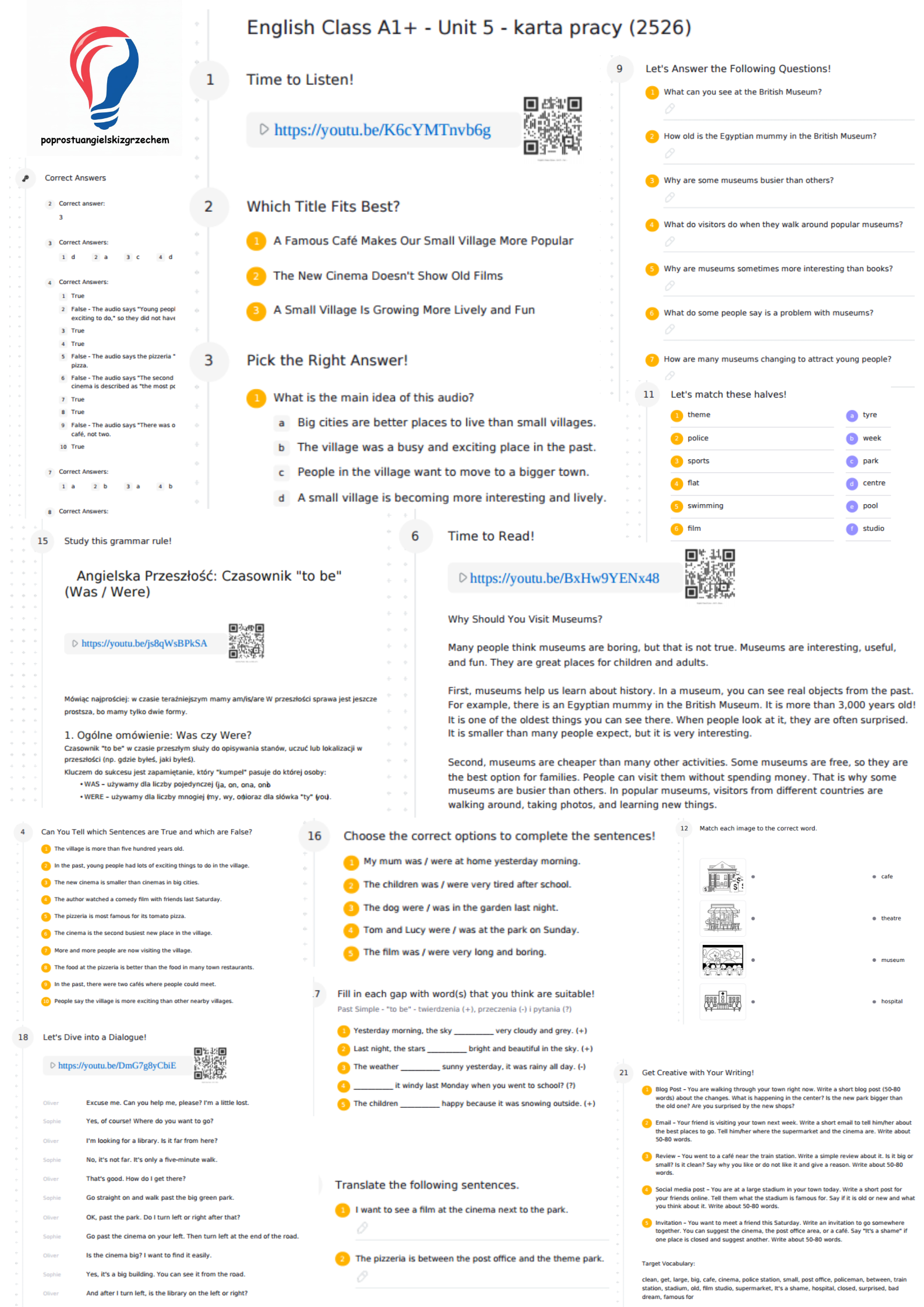 • 🎬 Wideo objaśniające gramatykę "Was/Were" – link i kod QR do mojego autorskiego filmu na YT, który wyłoży teorię za Was.