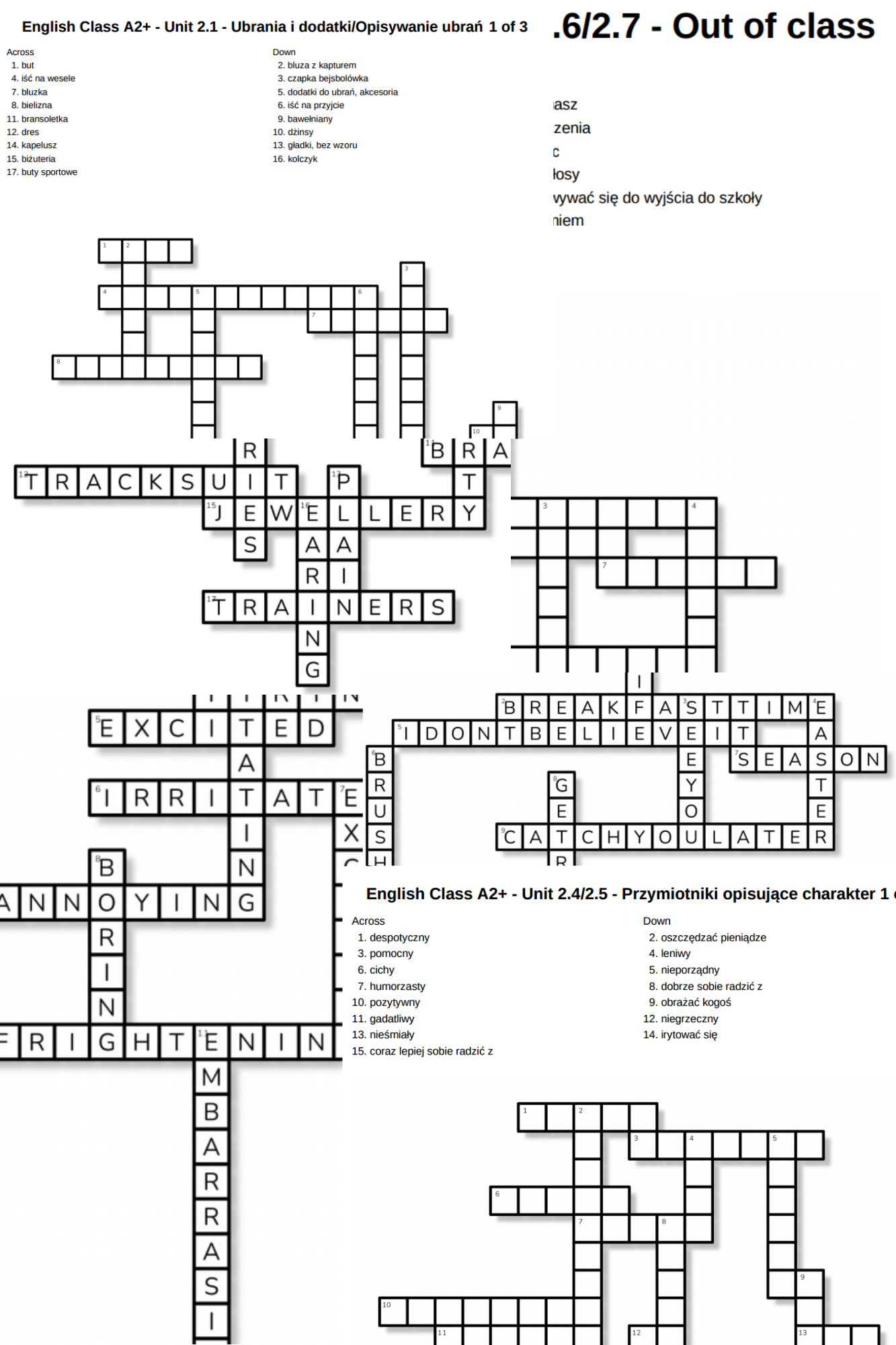 Zestaw zawiera 8 krzyżówek obejmujących słówka z działu drugiego do podręcznika English Class A2+: