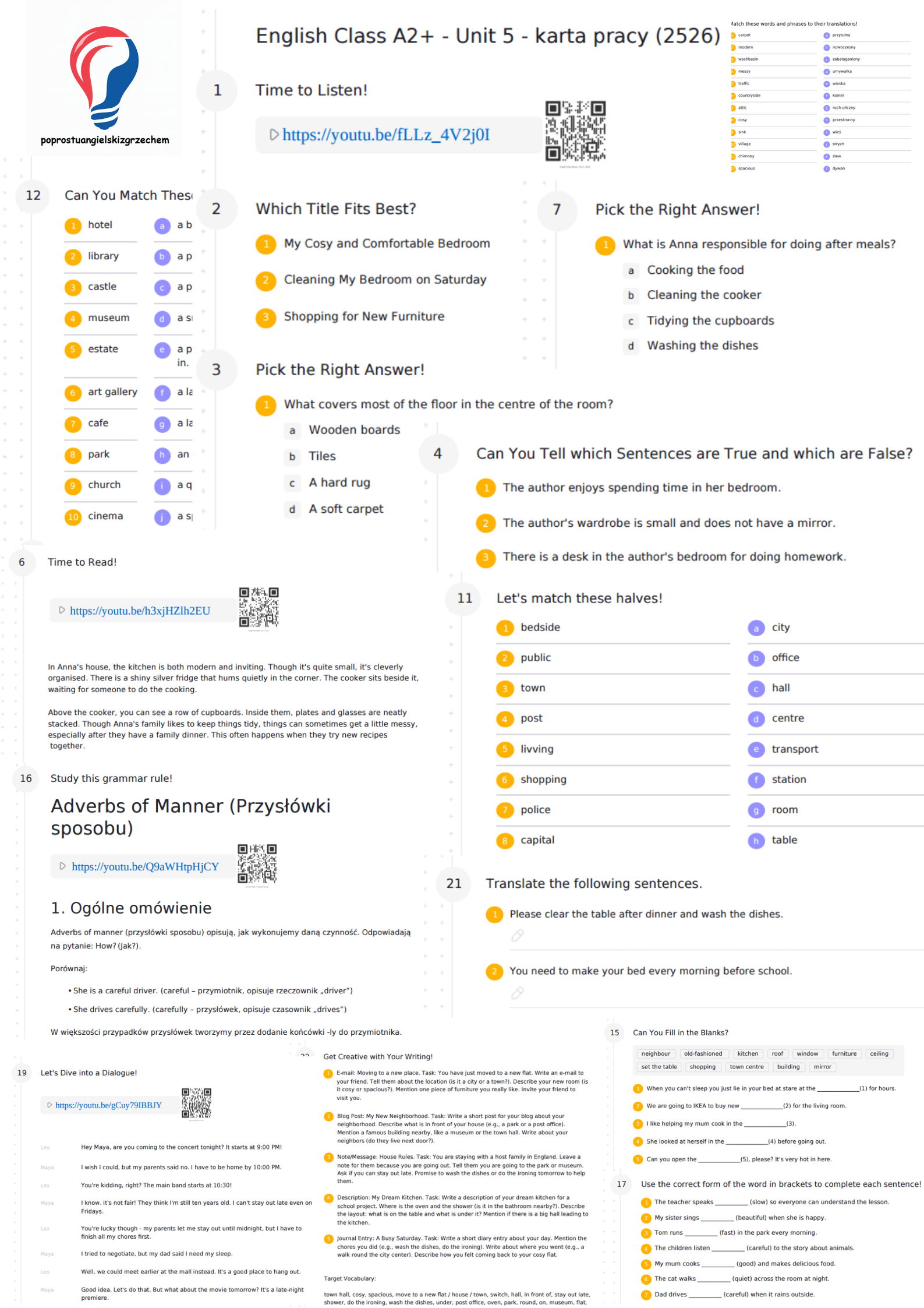 Przedstawiam gotowca, który jest jak szwajcarski scyzoryk w Twoim piórniku. 🇨🇭 To kompletny pakiet do Unit 5 (poziom A2+), który sprawi, że Twoja lekcja „zrobi się sama”, a uczniowie zapomną o patrzeniu na zegarek.