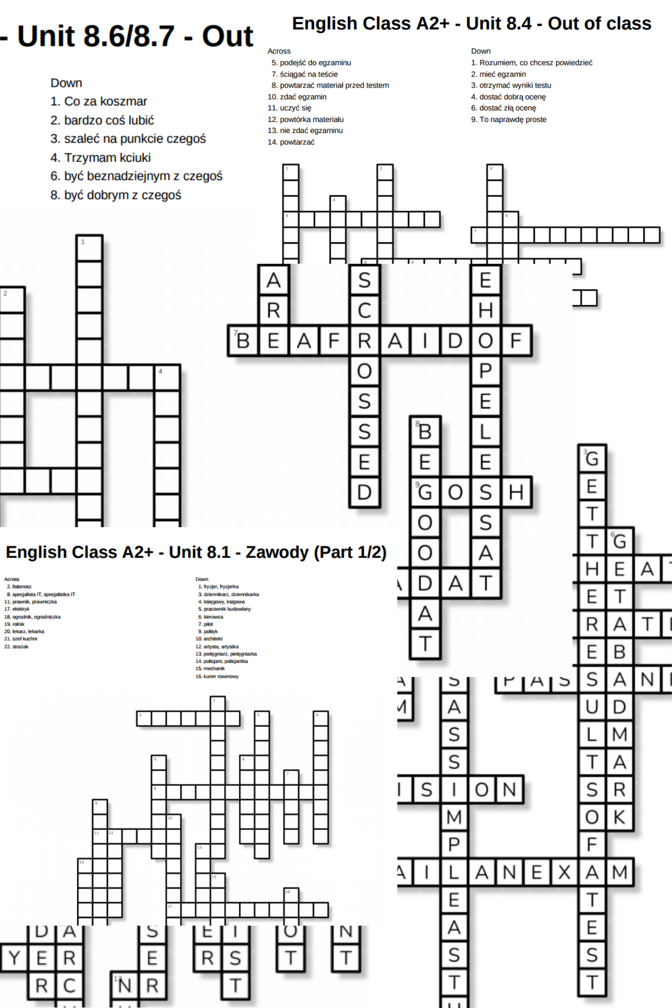 Zestaw zawiera 6 krzyżówek obejmujących słówka z działu ósmego do podręcznika English Class A2+: