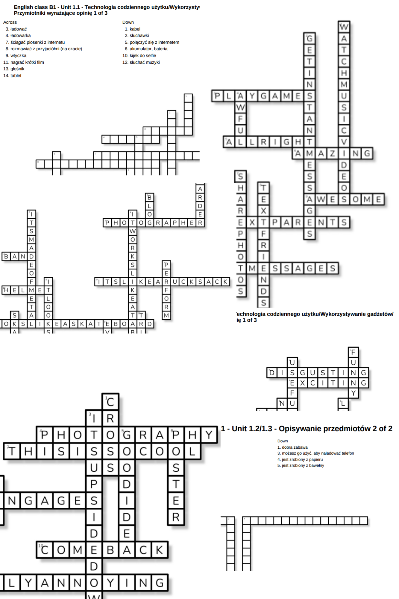 Zestaw zawiera 7 krzyżówek obejmujących słówka z działu pierwszego do podręcznika English Class B1: