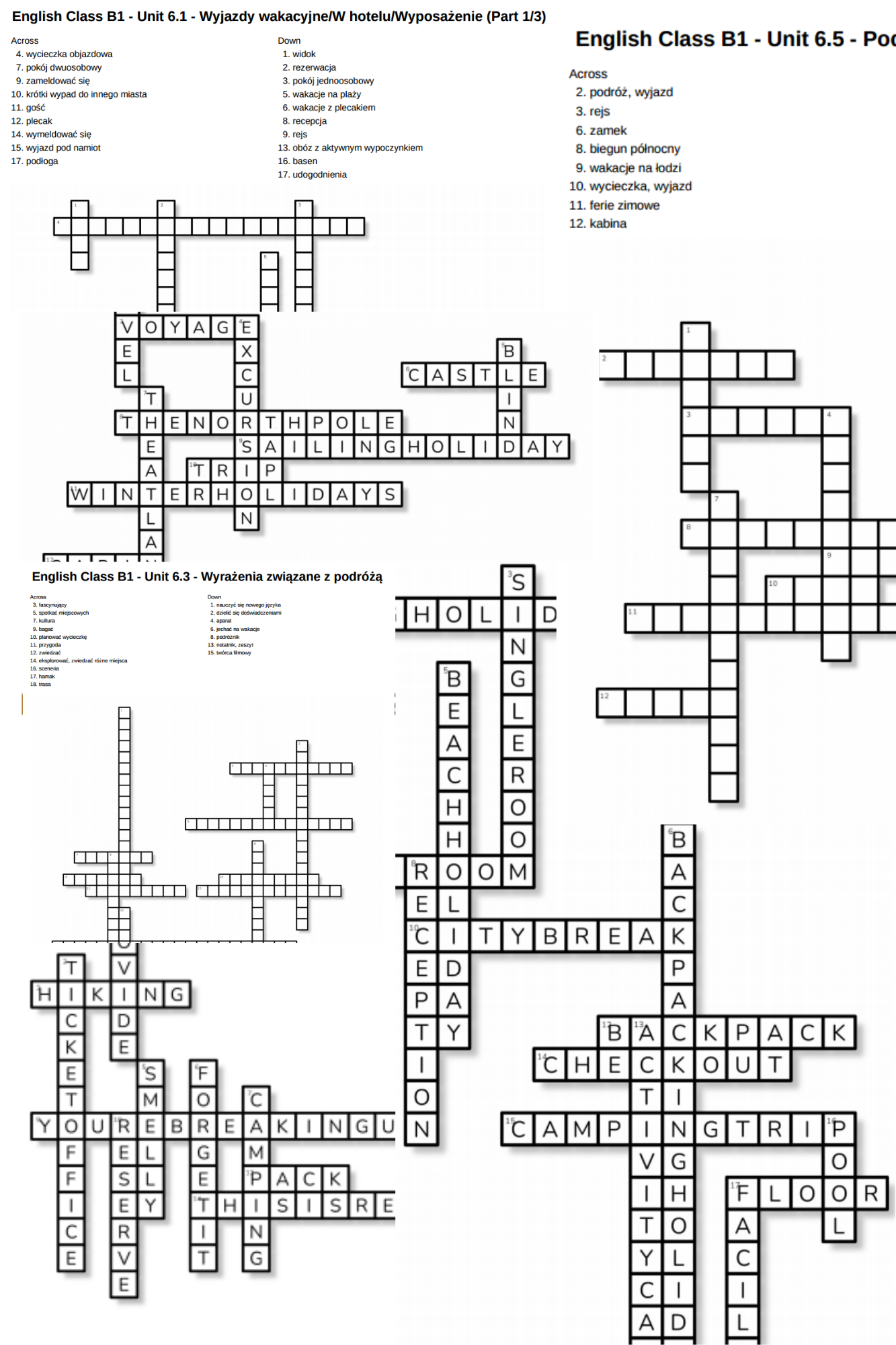 Zestaw zawiera 7 krzyżówek obejmujących słówka z działu szóstego do podręcznika English Class B1: