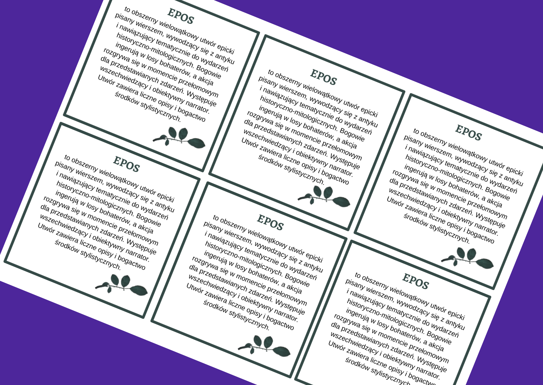 Wklejka dotycząca eposu i jego cech gatunkowych.