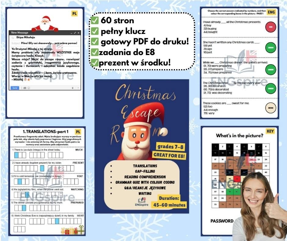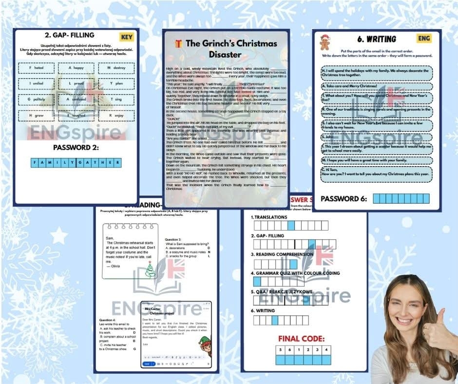 Jeśli chcesz wprowadzić na lekcję trochę świątecznej magii, a jednocześnie powtarzać treści egzaminacyjne – ten zestaw będzie strzałem w dziesiątkę!