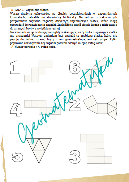 Misterium Brył to starannie opracowana gra typu escape room (pokój zagadek), która wprowadza uczniów w fascynujący świat brył przestrzennych. Uczestnicy wcielają się w rolę detektywów, rozwiązując serię 6 zadań prowadzących do odkrycia hasła końcowego i rozwiązania zagadki zaginionej bryły.
