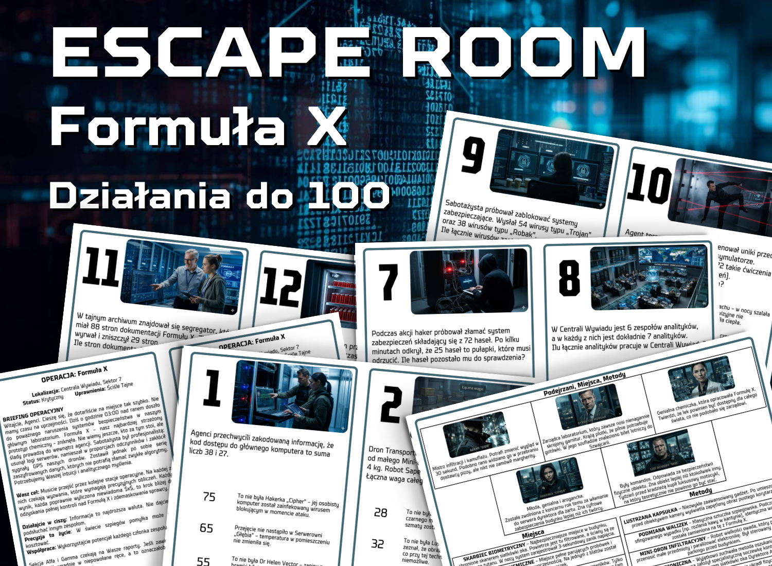 Dziś o godzinie 03:00 nad ranem w Centrali Wywiadu doszło do zuchwałego sabotażu. Najbardziej strzeżony prototyp chemiczny – tytułowa Formuła X – zniknął z laboratorium! Uczniowie wcielają się w rolę tajnych agentów. Mają jeden cel: zdemaskować sprawcę, ustalić miejsce ukrycia formuły i odkryć metodę, jakiej użyto do kradzieży.