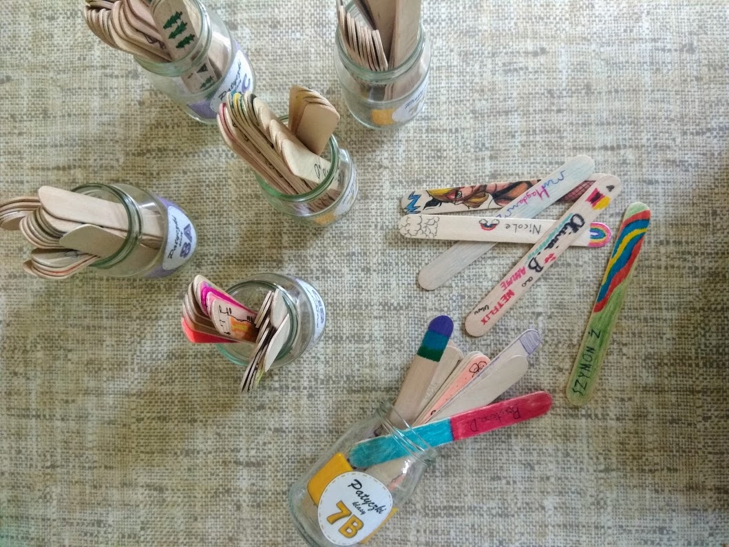 Etykiety na patyczki z imionami mają szereg zastosowań podczas lekcji.