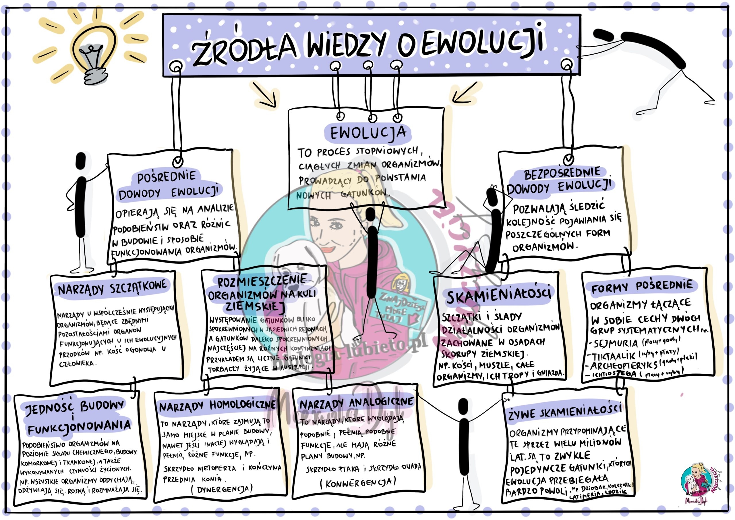 Ewolucja - gotowa wklejka do zeszytu, kolorowa notatka.