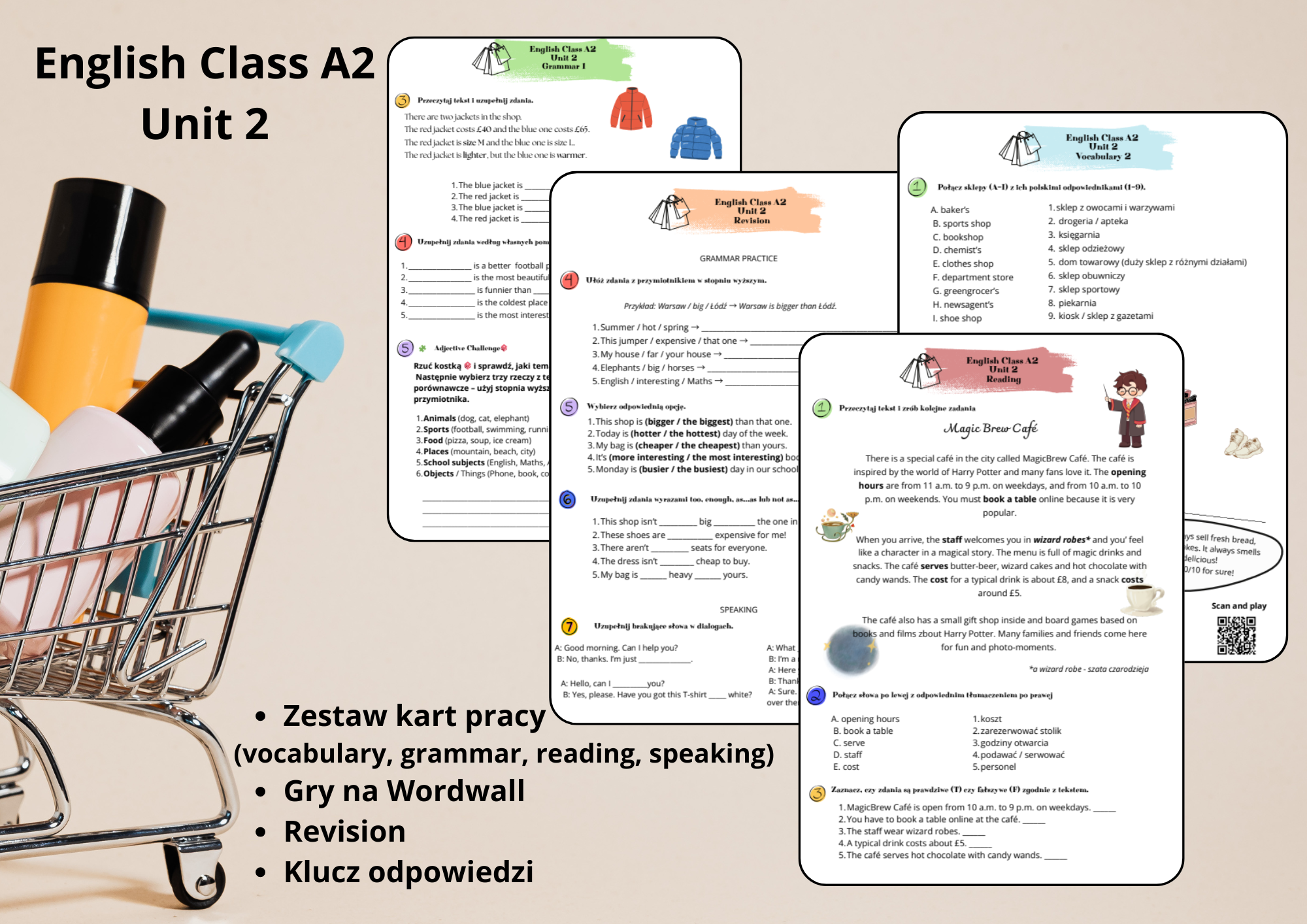 Ten zestaw kart pracy to kompletne wsparcie dla uczniów 6. klasy, które sprawia, że nauka angielskiego staje się ciekawa i angażująca! Przygotowane zadania pozwalają utrwalić materiał z English Class A2 – Unit 2 w różnorodny, interaktywny sposób.