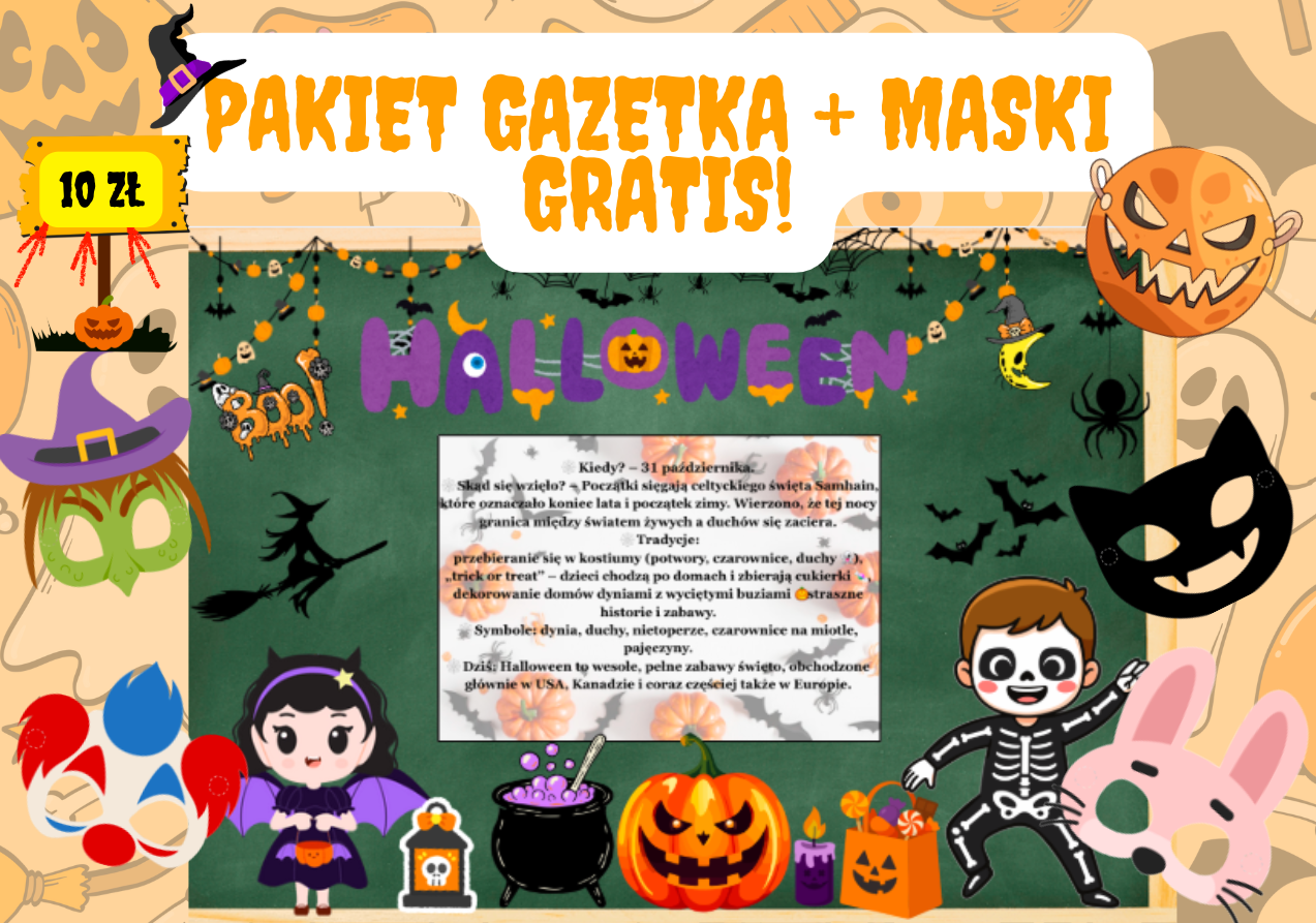 🎃 Pakiet Halloween – Gazetka + Maski GRATIS!