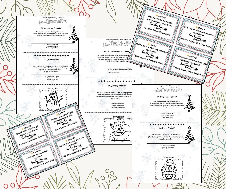 50 świątecznych tekstów z zadaniami + 24 karty ruchowe GRATIS