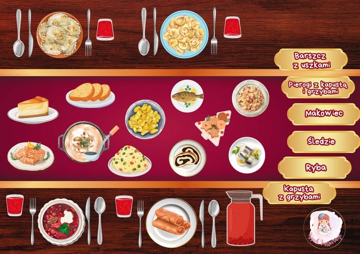 🔹 dzieci mogą układać potrawy, nakrywać stół, tworzyć własne wersje wigilijnych zestawów