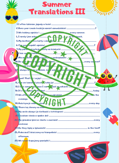 Zestaw zawiera kolorowe, wakacyjne grafiki, które przyciągają uwagę i umilają naukę ☀️🌴