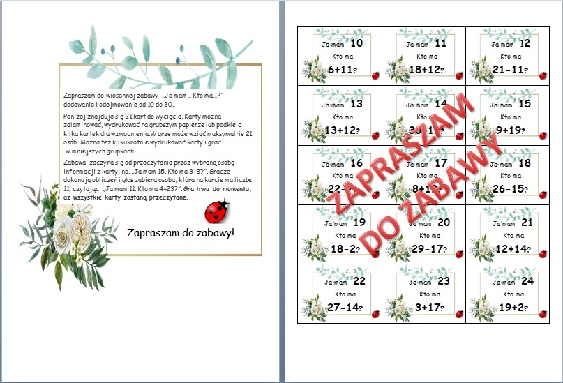 ?Dodawanie i odejmowanie w zakresie 10-30 w formie gry