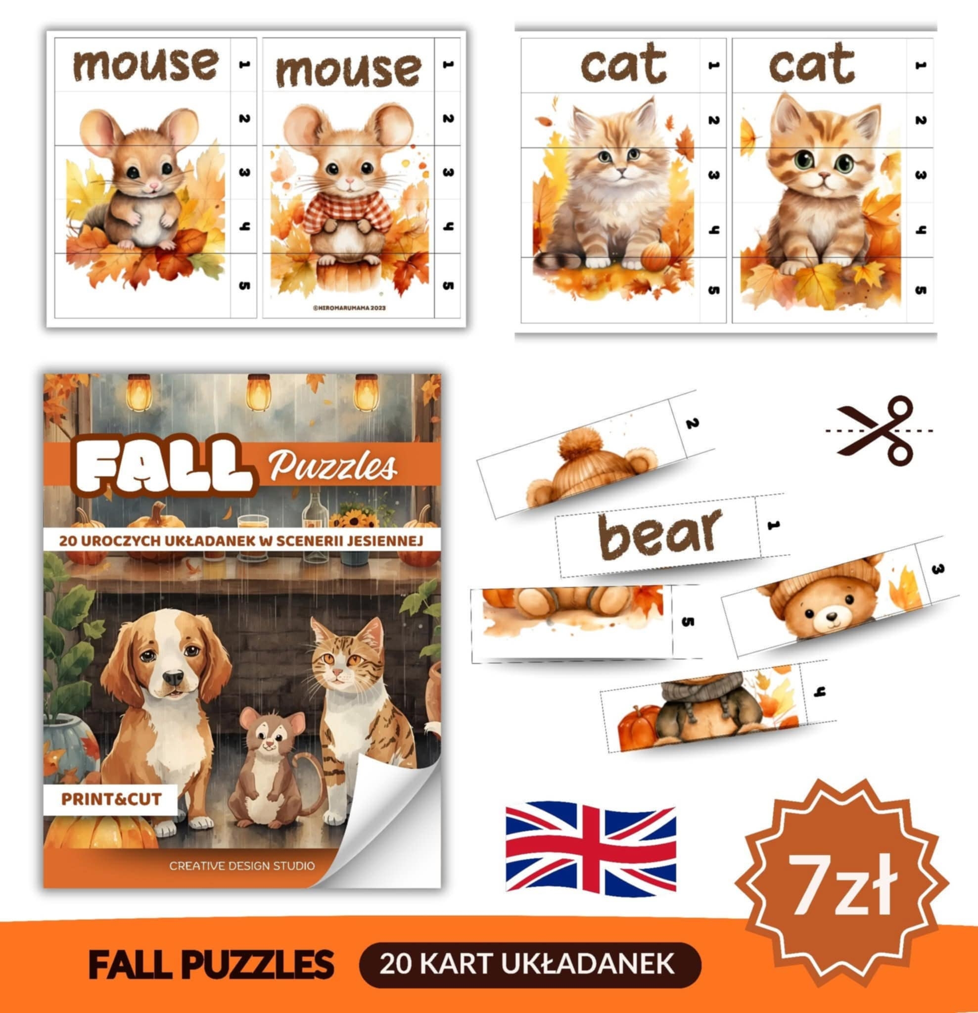 💥Zestaw 20 uroczych kart układanek z zwierzątkami w tematyce jesiennej, które idealnie sprawdzą się na zajęciach języka angielskiego. 🐭🐻🐱🇬🇧