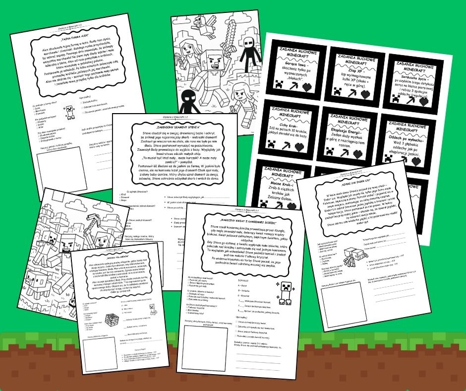 ✔ zadania ruchowe oparte na mobach i misjach Minecraft