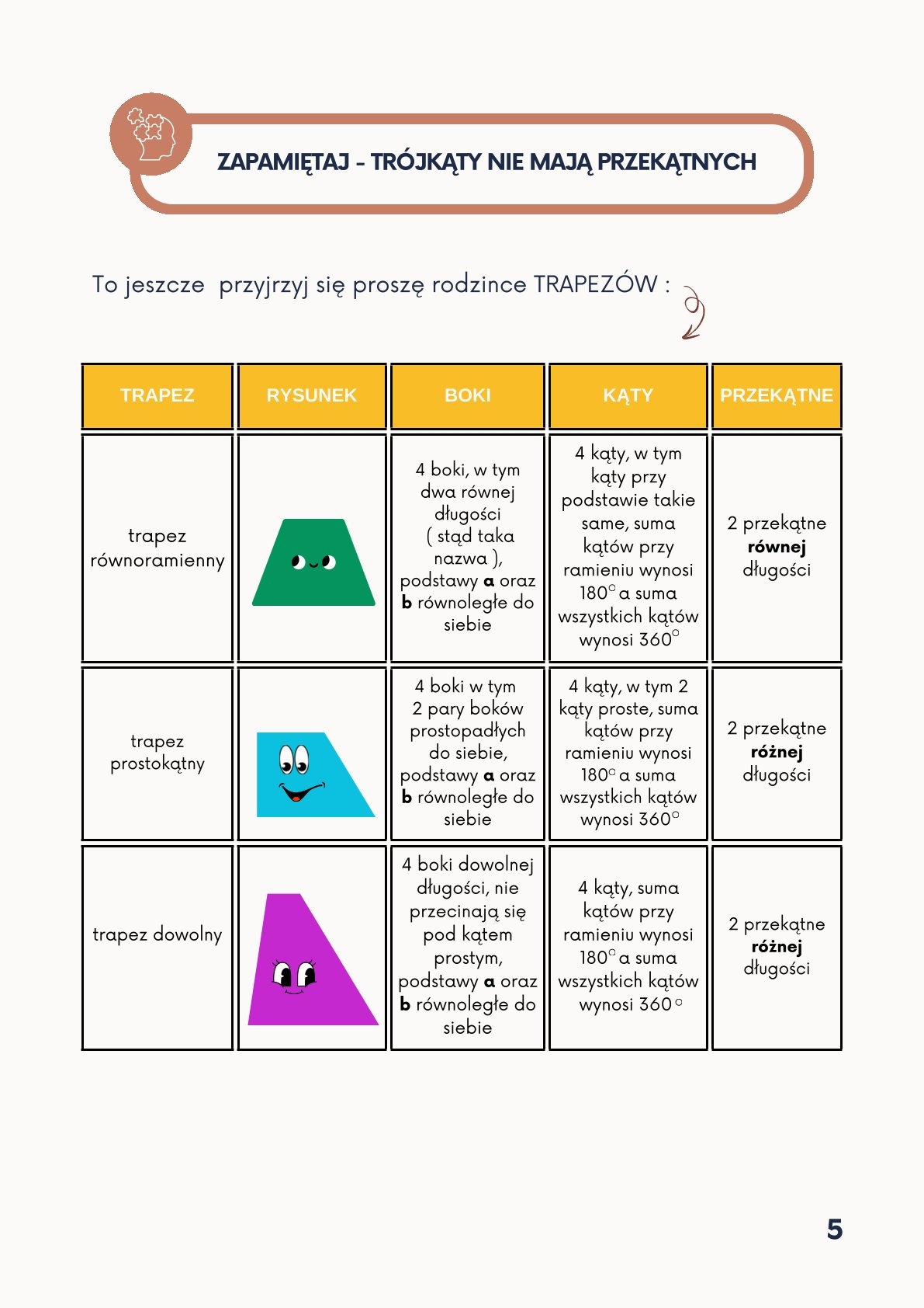 Nie wszystko kręci się wokół koła J . Kwadraty , prostokąty, romby, równoległoboki, trapezy, trójkąty – wszystko o tych figurach opisane w prosty, przejrzysty, kolorowy sposób. Własności, rodzaje, zadania.