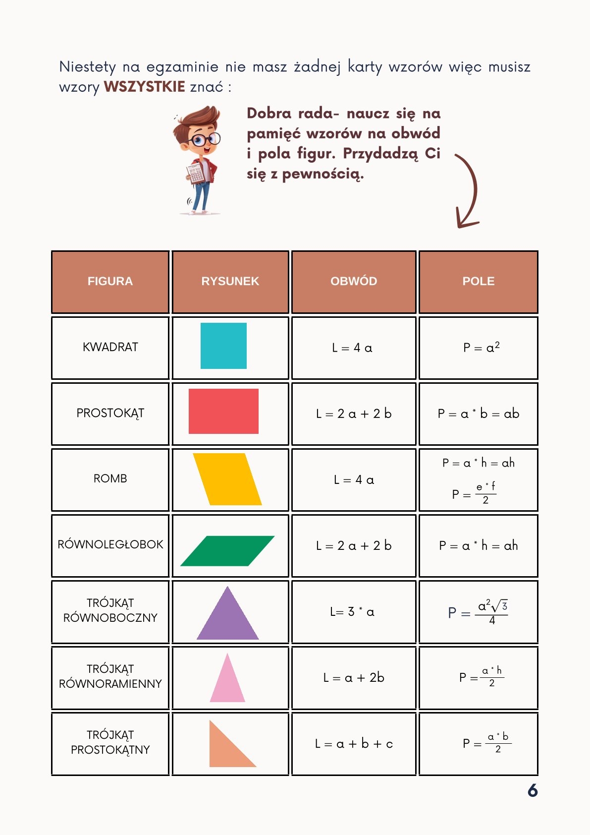Dołącza do nich także koło i okrąg z wzorami i zastosowaniem na pole i obwód.