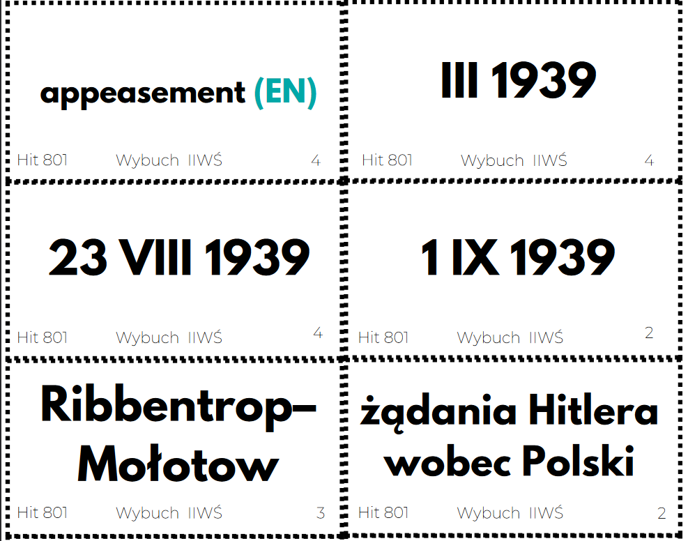 Przedstawiam mój zestaw fiszek do nauki. Tym razem do tematu 1 z “Historia 8” wyd. GWO. Lekcja “Wybuch II wojny światowej”.