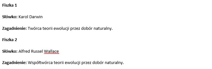 Zestaw 50 fiszek wyjaśniających główne zagadnienia dotyczące ewolucji człowieka.
