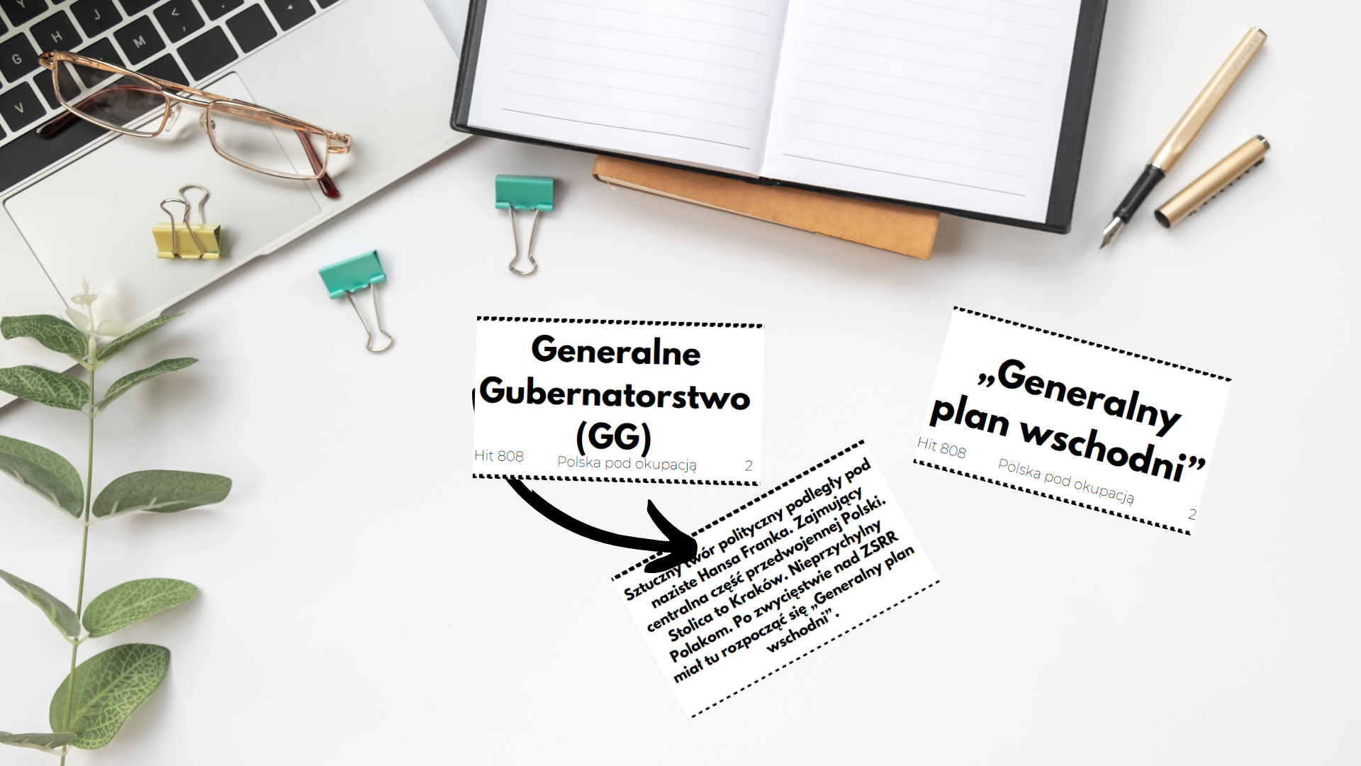 Zestaw fiszek do nauki z tematu 8 w “Historia 8” wyd. GWO. Lekcja “Polska pod okupacją”.