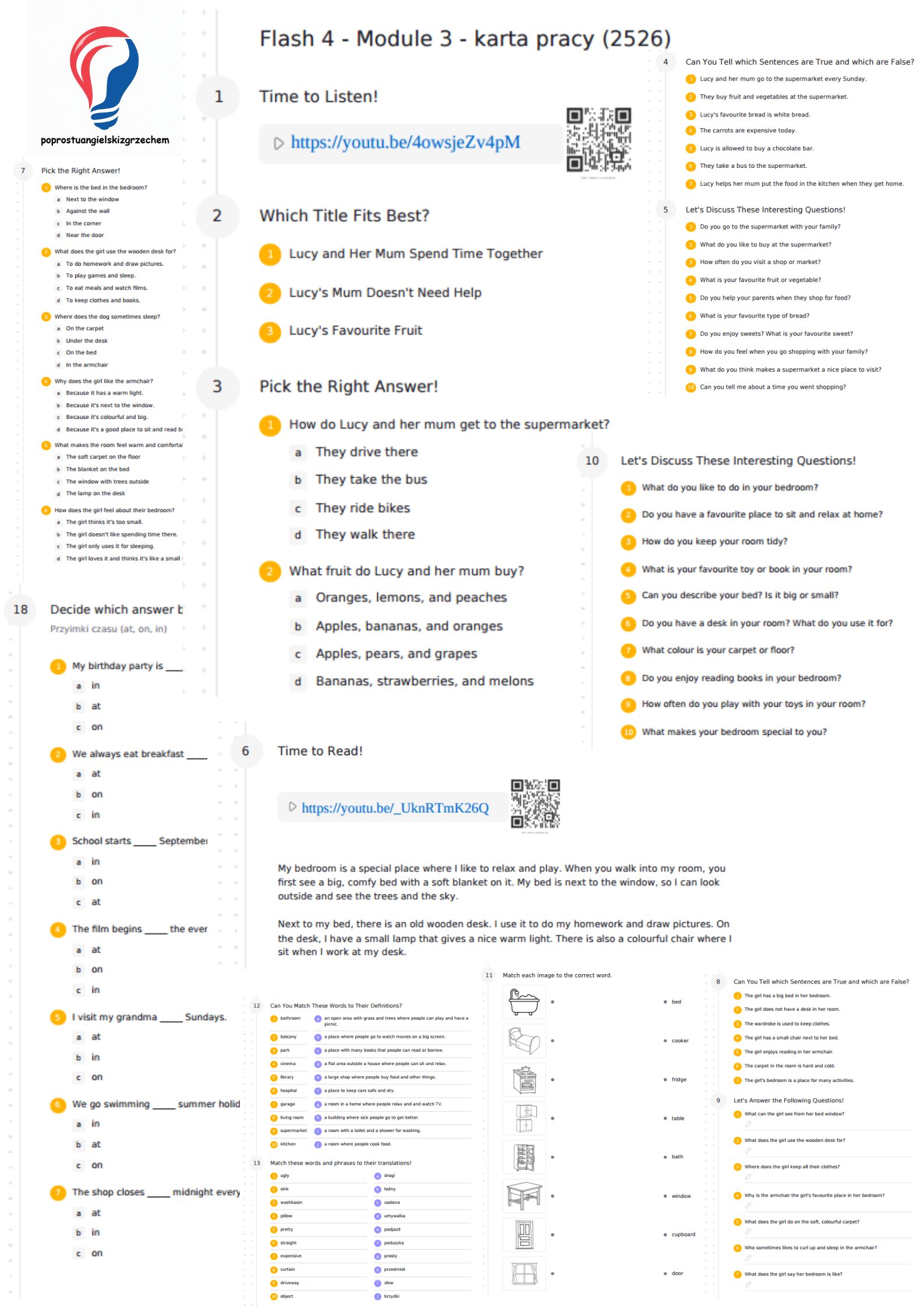 🧠 20 zadań – słuchanie, czytanie, gramatyka, słownictwo i mówienie