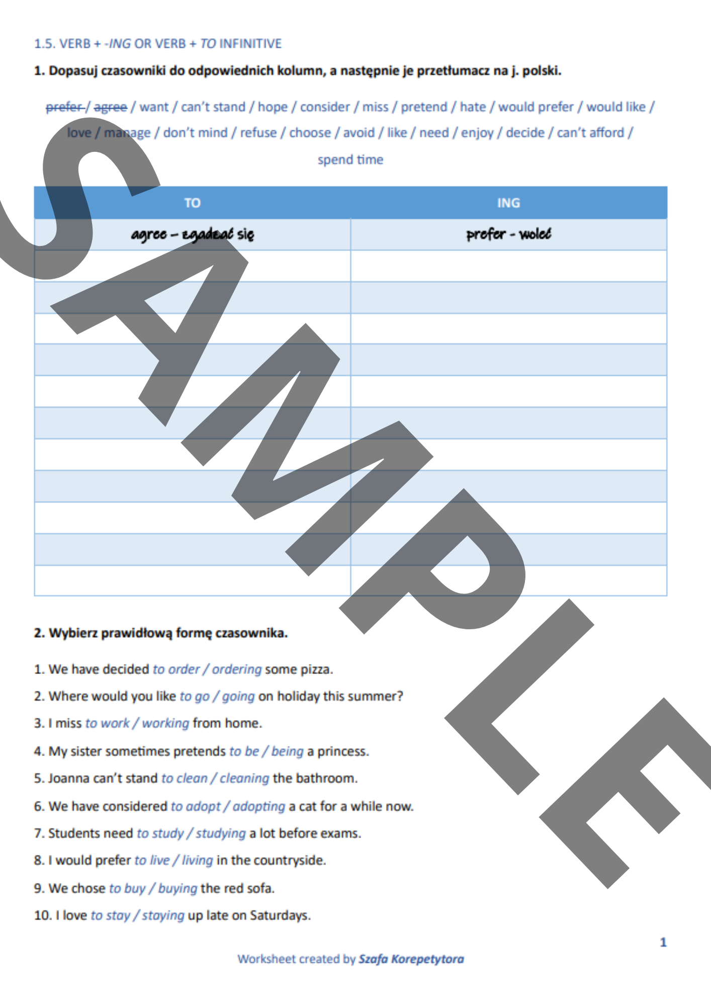 Focus 2 2nd edition 1.5. VERB + -ING OR VERB + TO INFINITIVE