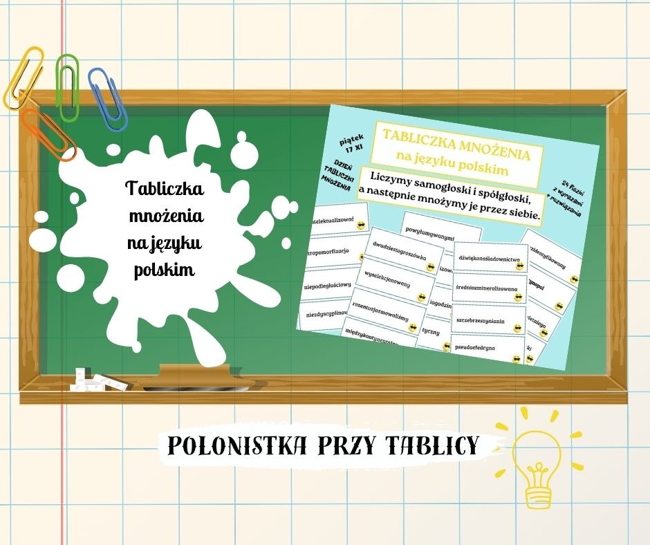 24 fiszki z długimi wyrazami - zadaniem ucznia jest policzyć samogłoski i spółgłoski, a następnie pomnożyć przez siebie. Do pliku dołączam rozwiązania - brałam pod uwagę "fizyczne" - znaki graficzne - samogłoski i spółgłoski, nie uwzględniając zmiękczeń i nosówek..