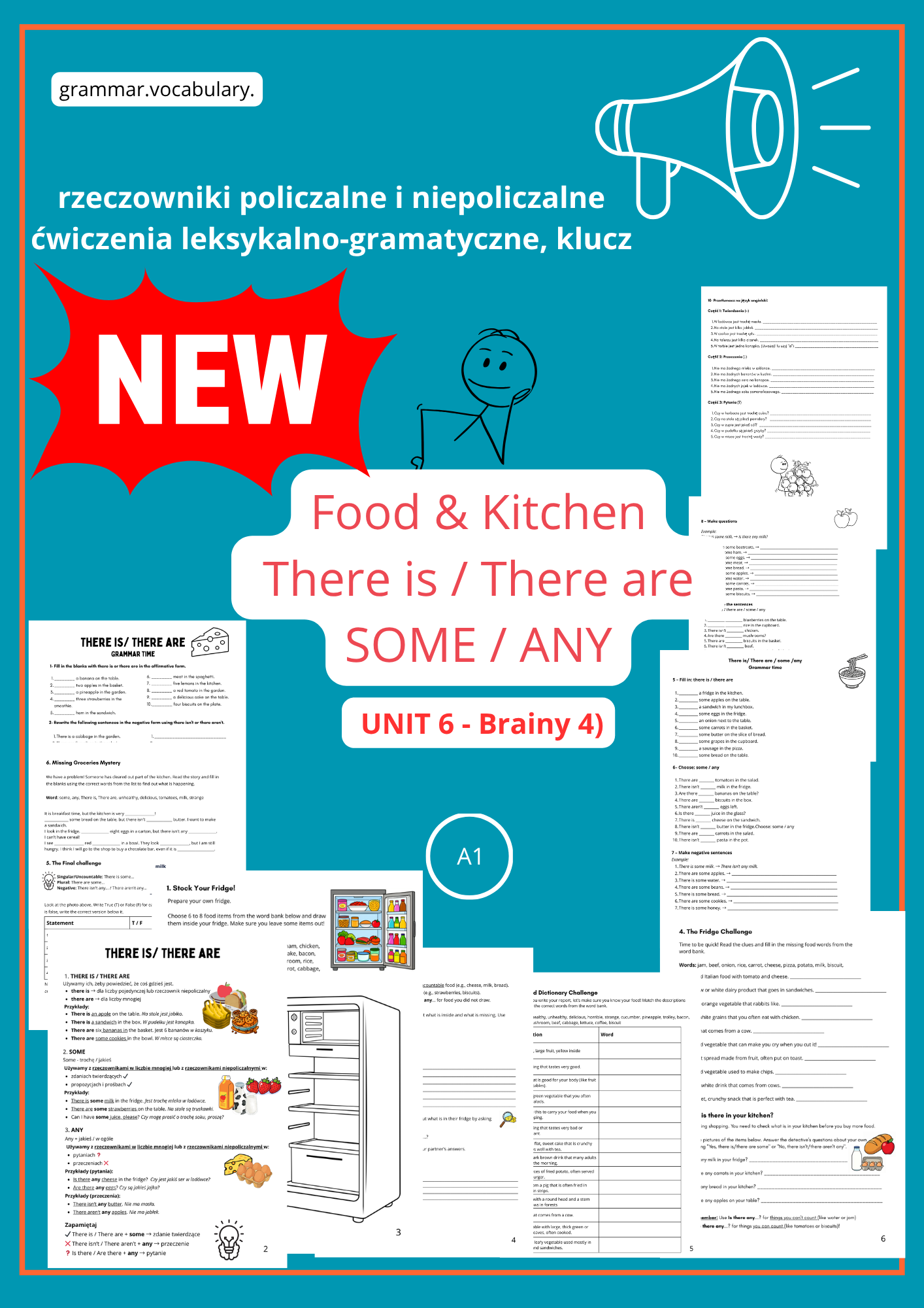 Ten materiał w sposób prosty, angażujący i skuteczny tłumaczy zawiłości zwiazane z rzeczownikami policzalnymi i niepoliczalnymi: