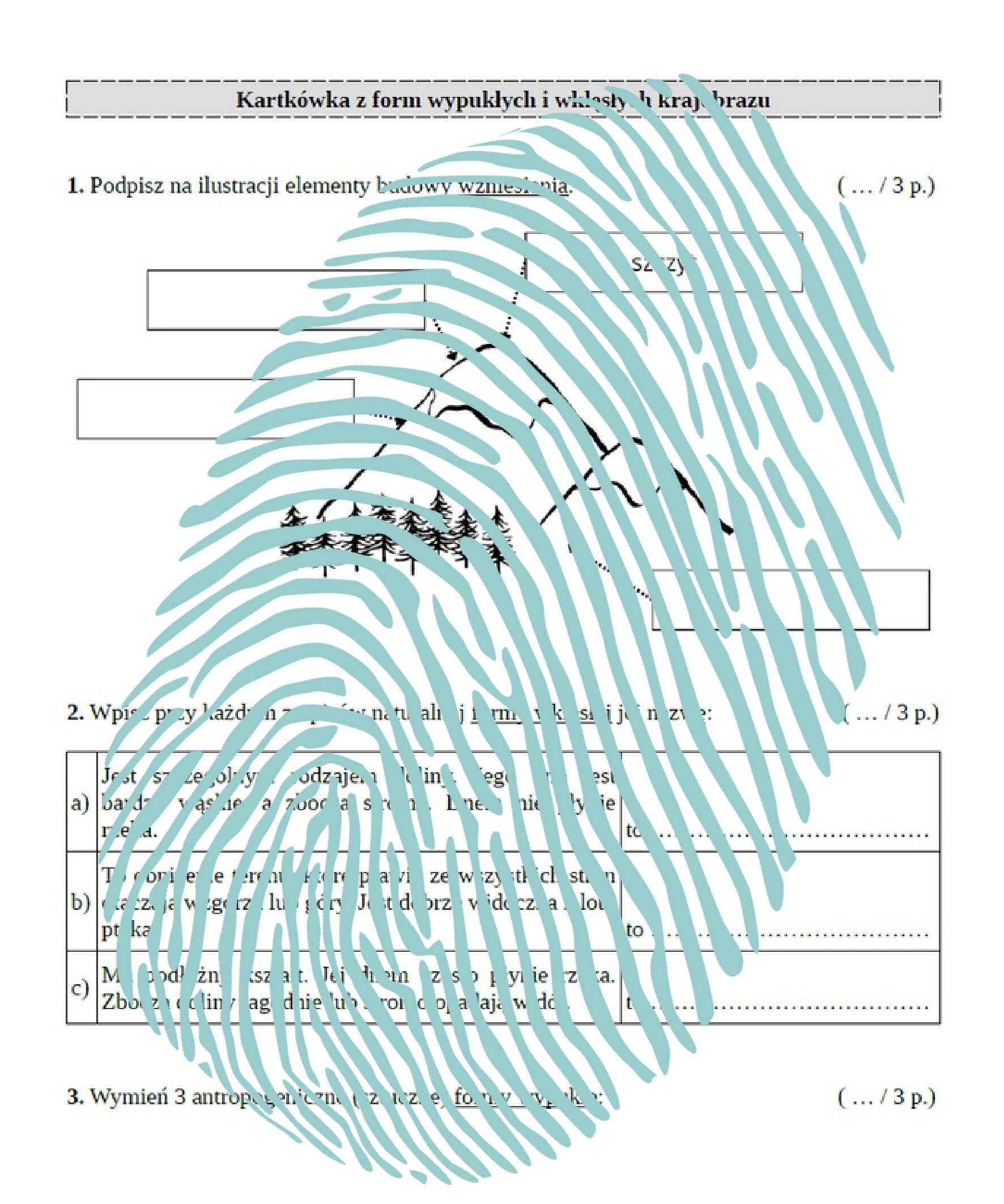 Kartkówka z form wypukłych i wklęsłych krajobrazu z przyrody w klasie 4.