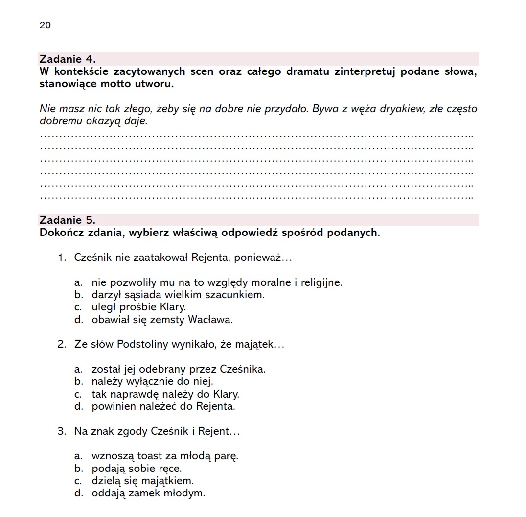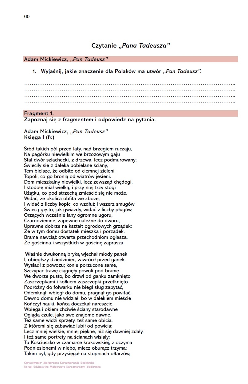 Do każdej lektury: 4 teksty + 5-6 zadań.