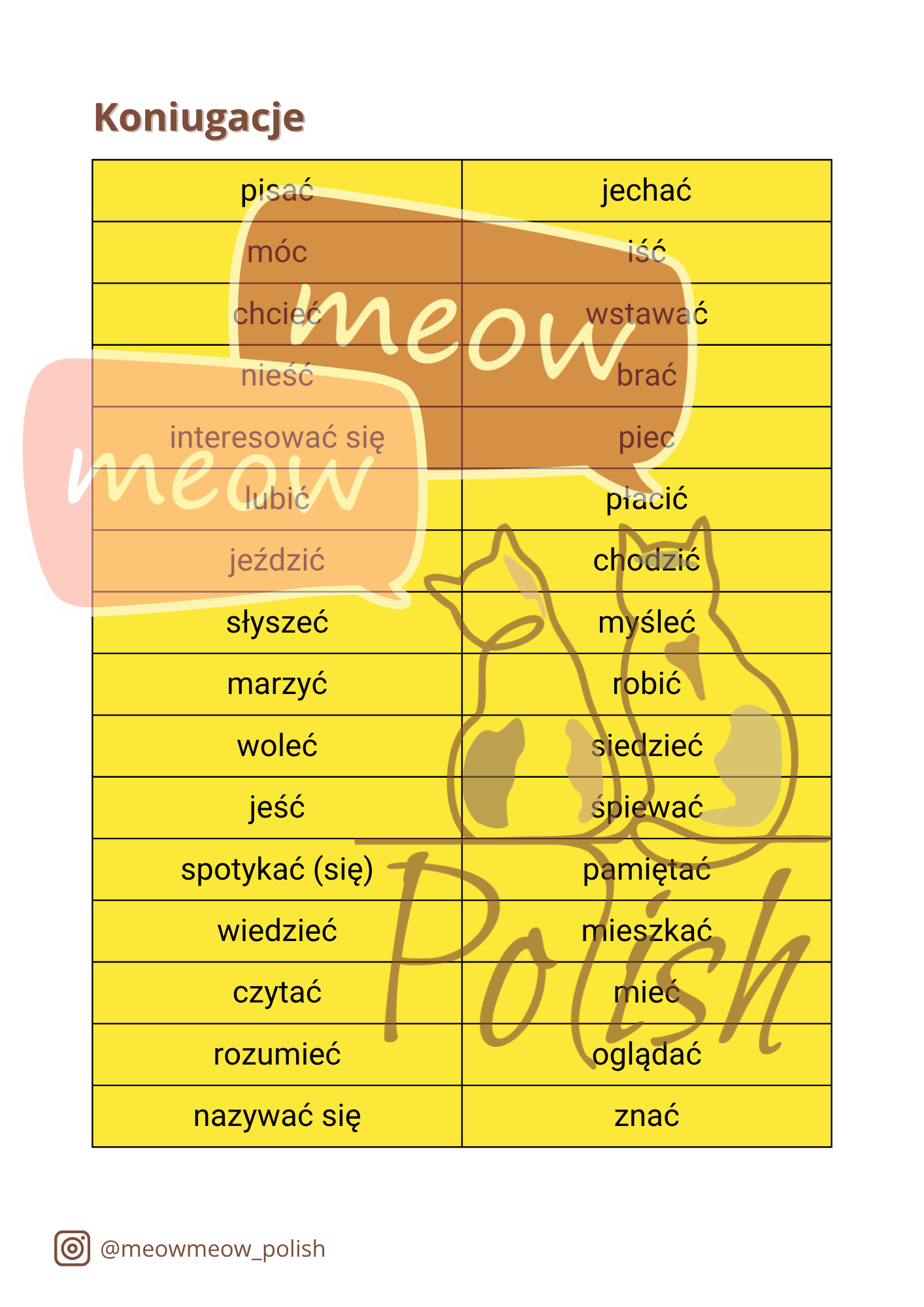 1. koniugacje: -m, -sz, -ę, -isz/-ysz oraz -ę, -esz