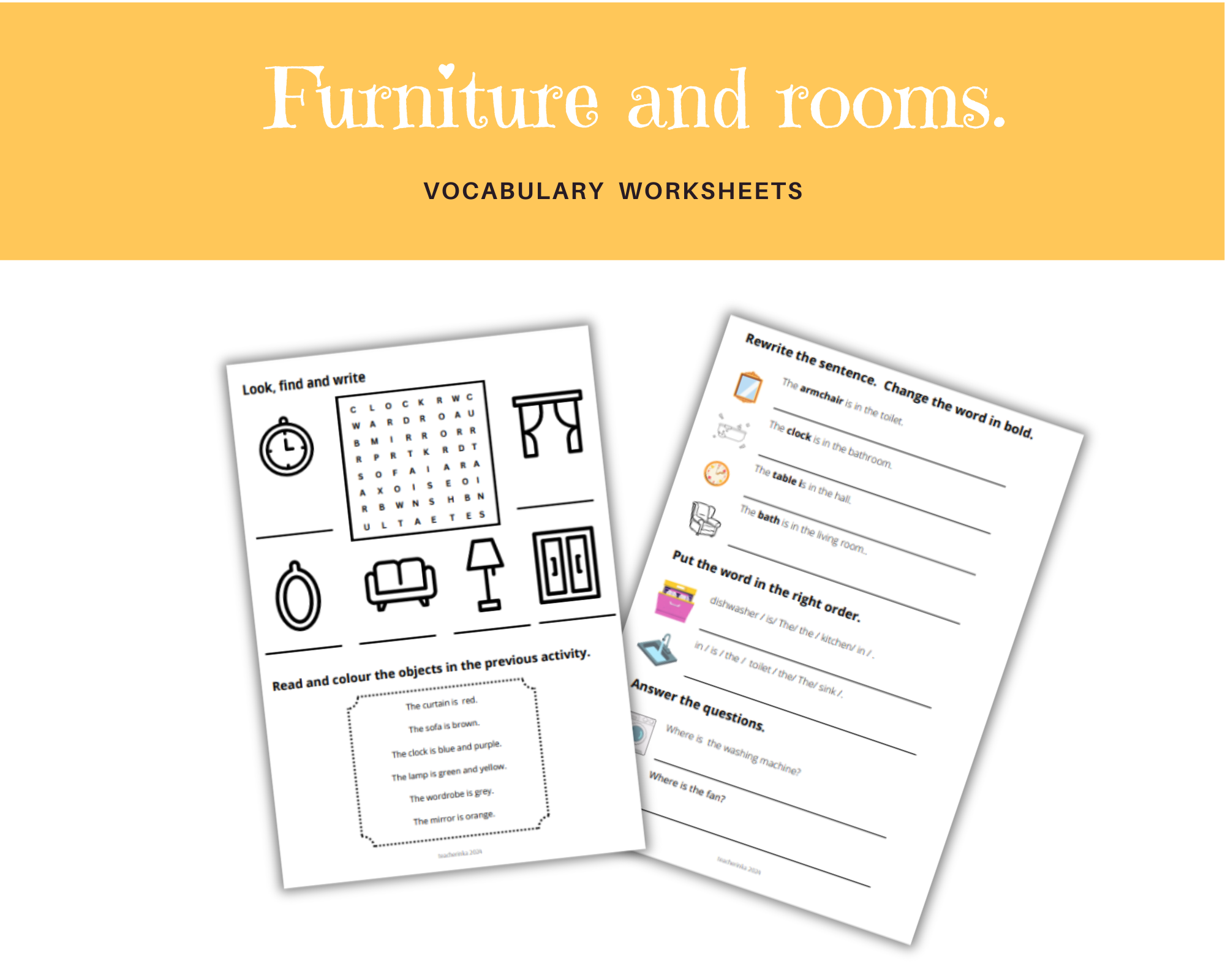Furniture and rooms to kompleksowy zestaw starannie opracowanych zadań, mających na celu zarówno utrwalenie treści przekazywanych na lekcjach szkolnych, jak i ich rozwój. Dzięki różnorodnym ćwiczeniom, uczniowie poszerzają słownictwo, stopniowo doskonalą umiejętność czytania ze zrozumieniem oraz rozpoczynają własną przygodę z tworzeniem zdań.