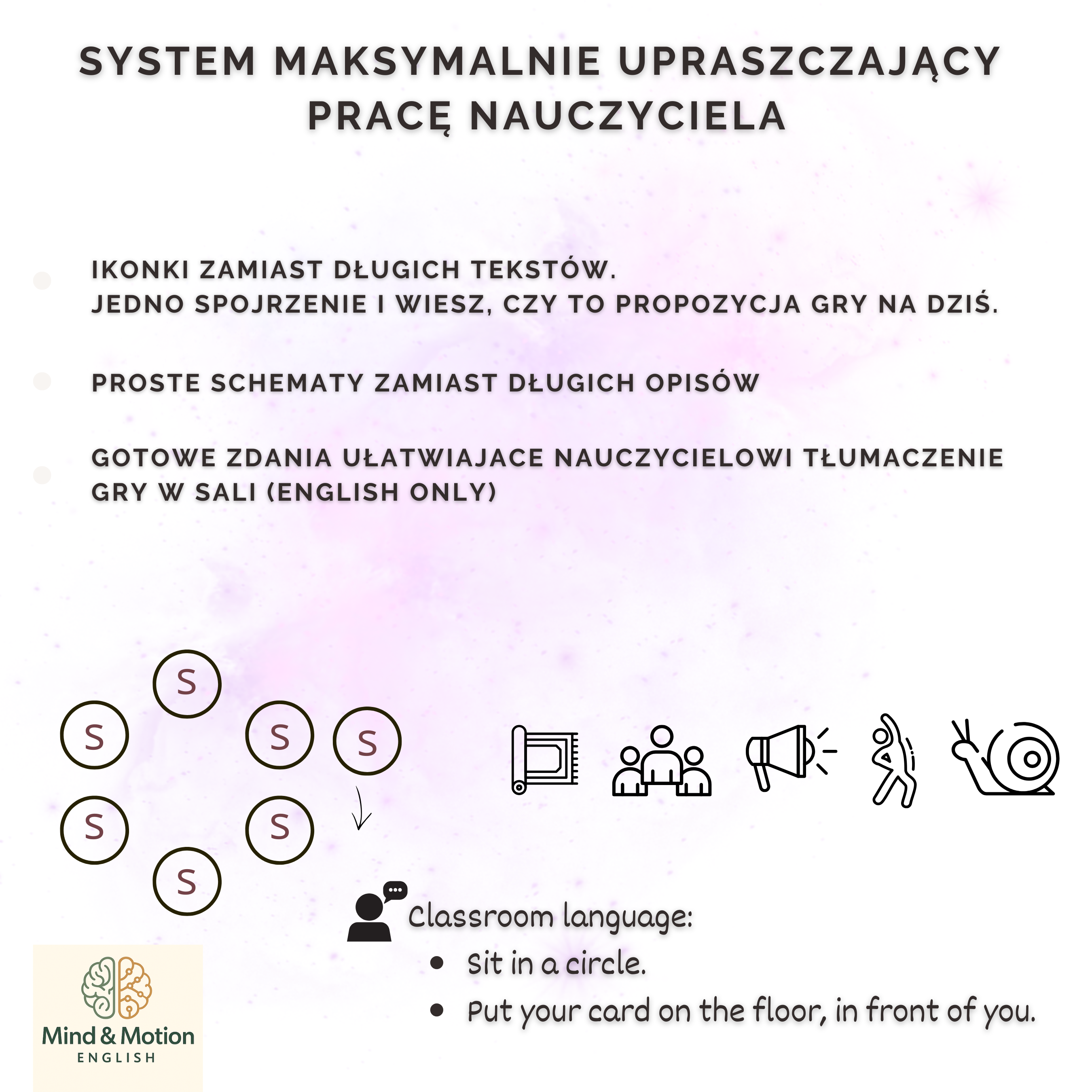 ✔ classroom language (gotowe zdania do prowadzenia gry po angielsku)