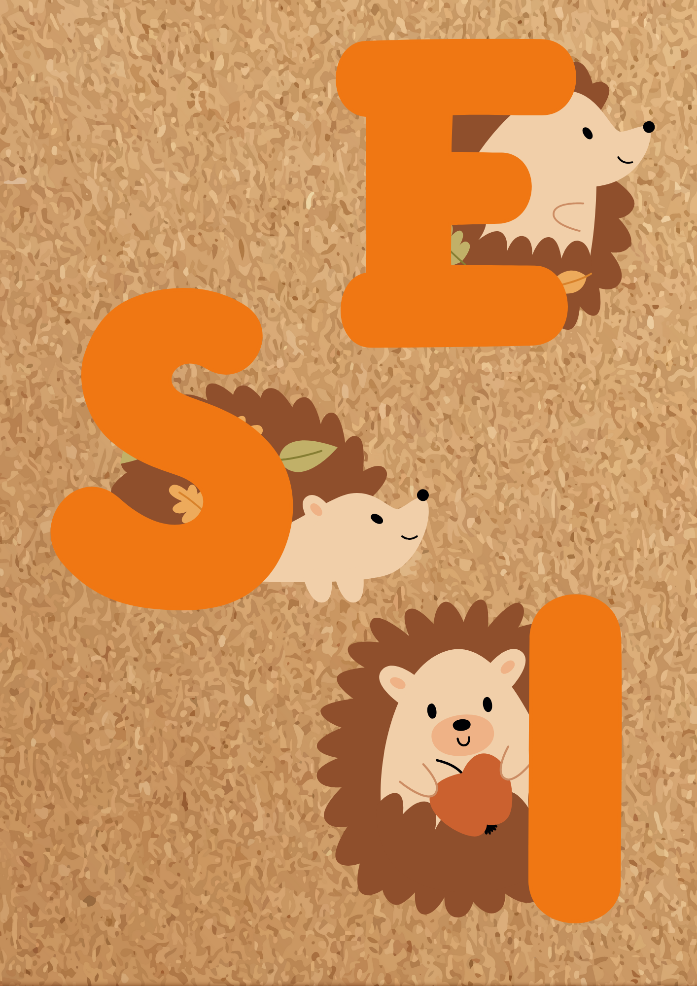 🤎 litery wraz z jeżykami (średnia wielkość litery to A5, jednak wraz z jeżem jedna litera umieszczona jest na formacie A4)