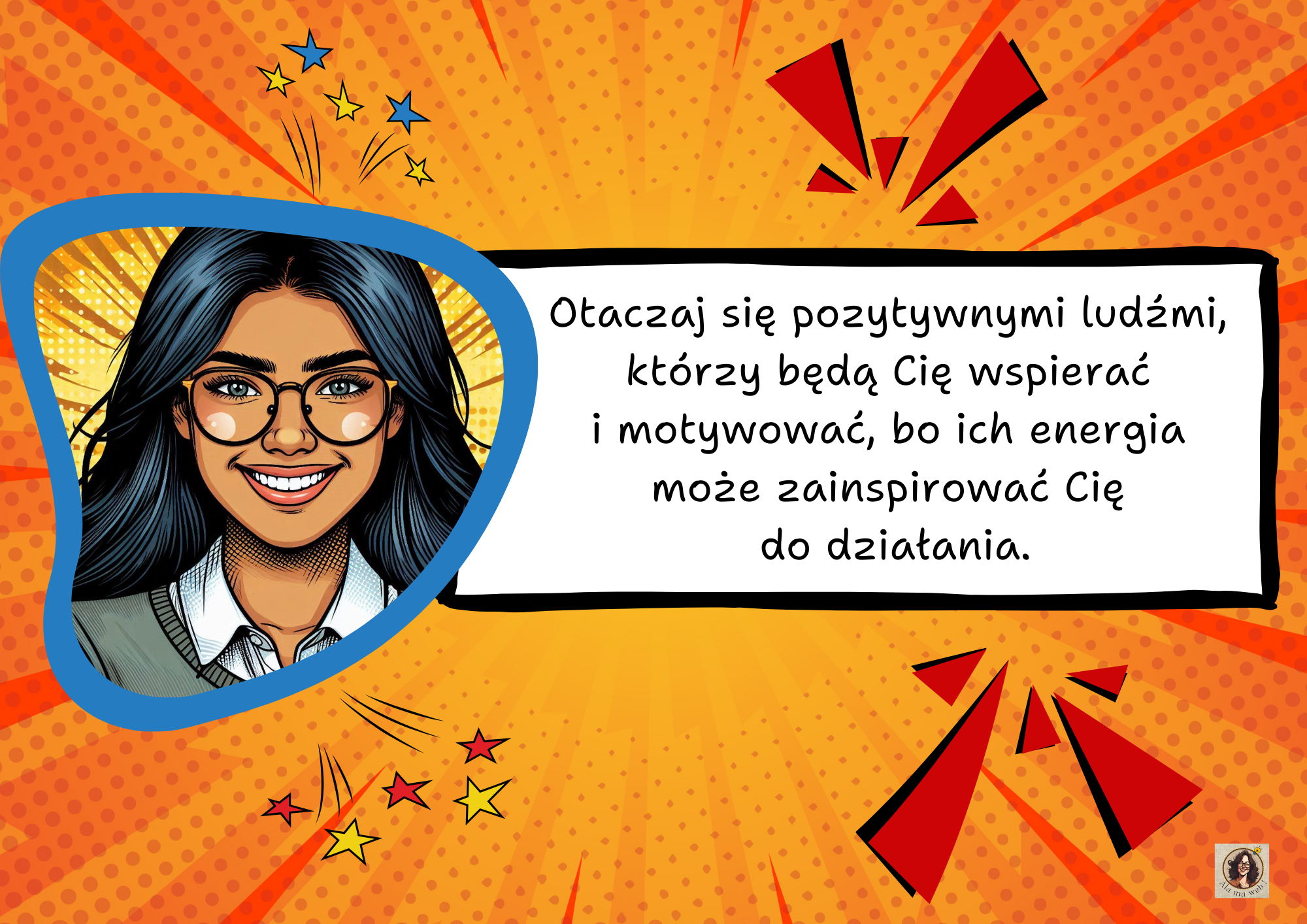 Materiał składa się ze strony tytułowej oraz 24 plansz z hasłami motywacyjnymi.