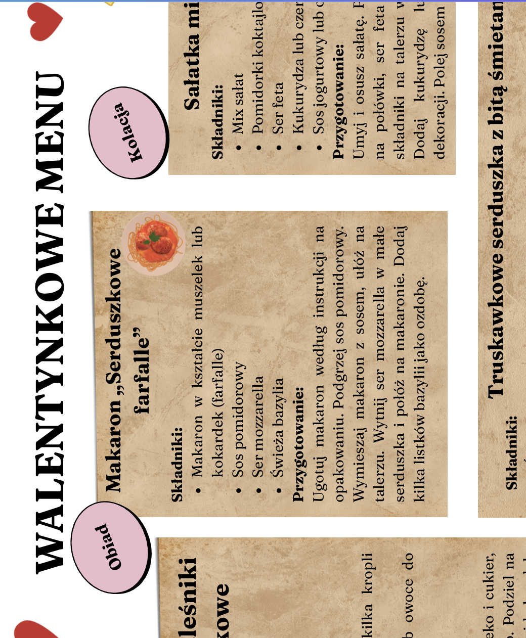 Przepisy walentynkowe – śniadanie, obiad, deser i kolacja w temacie miłości.