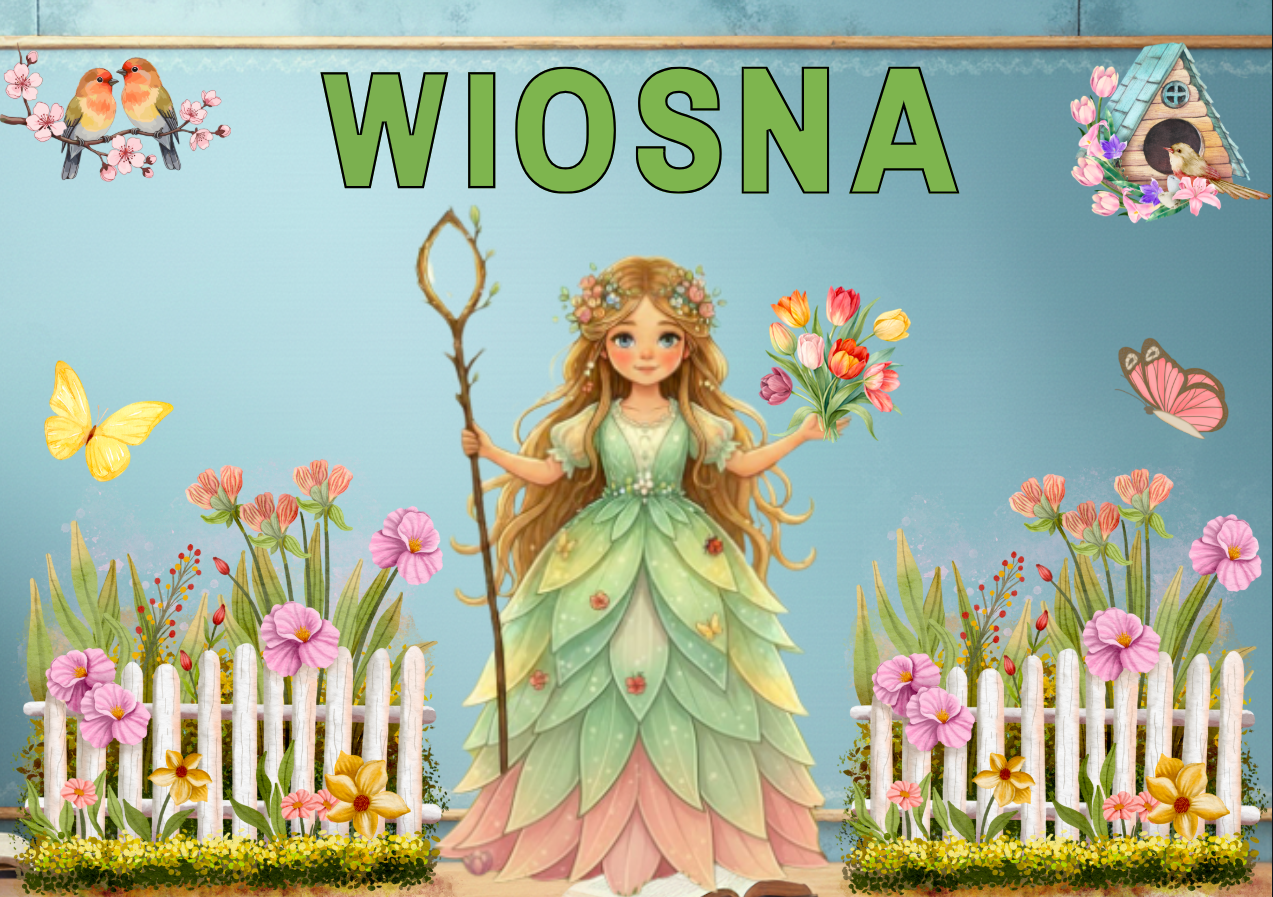 Wielki Format: Najważniejsze elementy (Pani Wiosna oraz płotek) to plakaty w formacie 4 x A4, dzięki czemu będą widoczne nawet z końca korytarza.