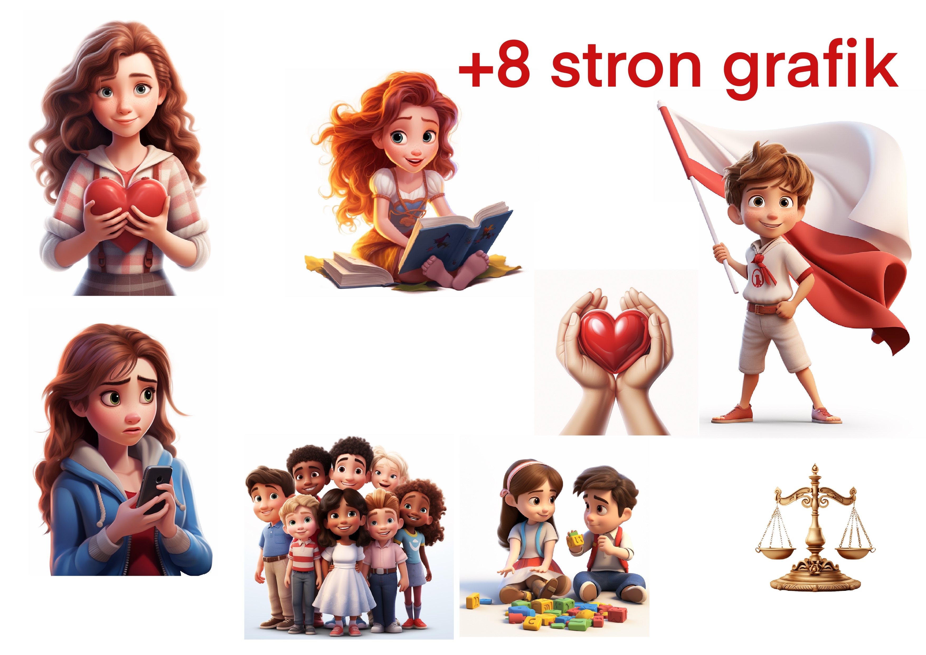 👉8 pojedynczych grafik (każda grafika na oddzielnej stronie w formacie A4.