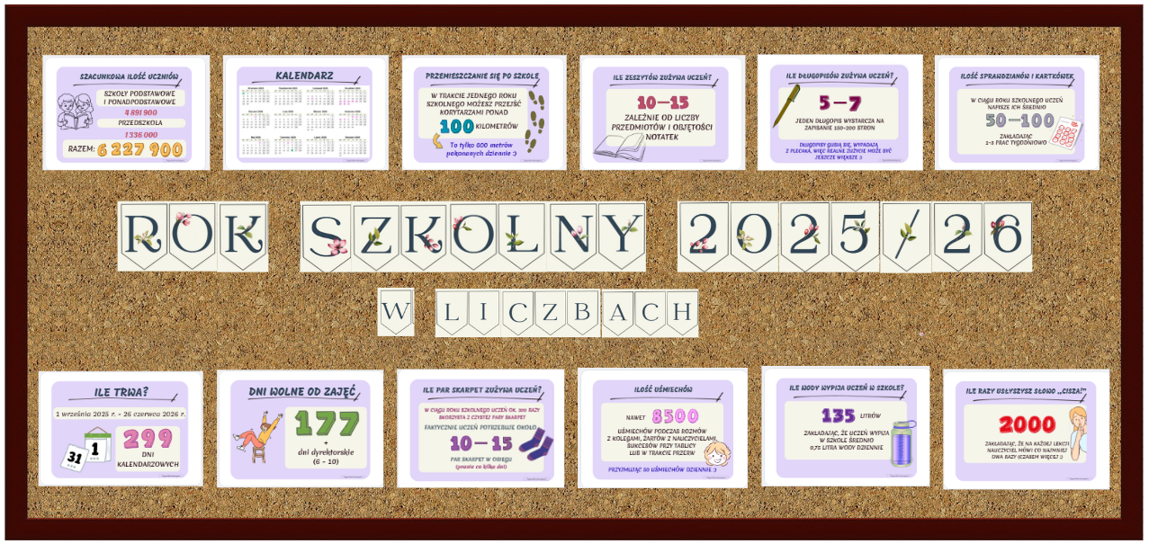 Materiał zawiera 24 stron formatu A4 do wydrukowania w kolorze. Można po wydrukowaniu wszystko zalaminować. Grafika wykonana za pomocą platformy canva.com.