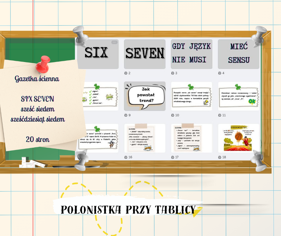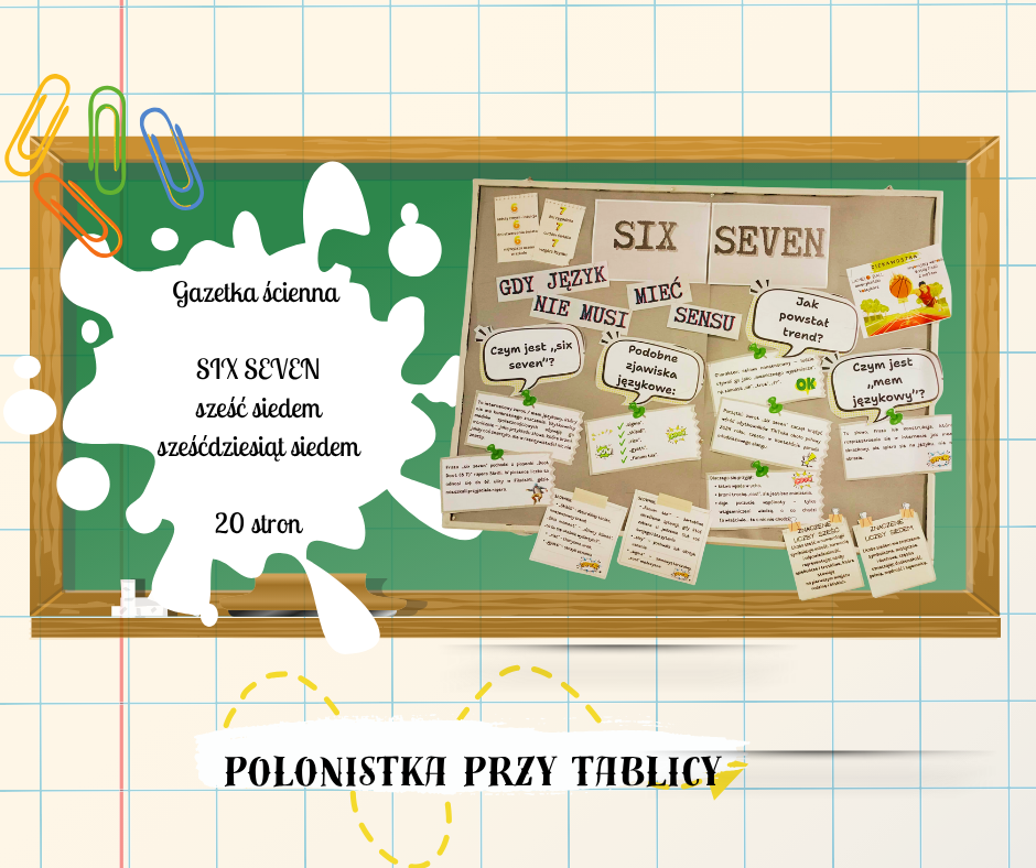 Gazetka „SIX SEVEN” idealnie sprawdzi się jako materiał na zajęcia wychowawcze, dodatek do gazetki szkolnej, narzędzie do rozmowy o języku współczesnym lub po prostu zabawna lektura z kategorii: „Nie wiem, po co to czytam, ale bardzo mi się podoba”.