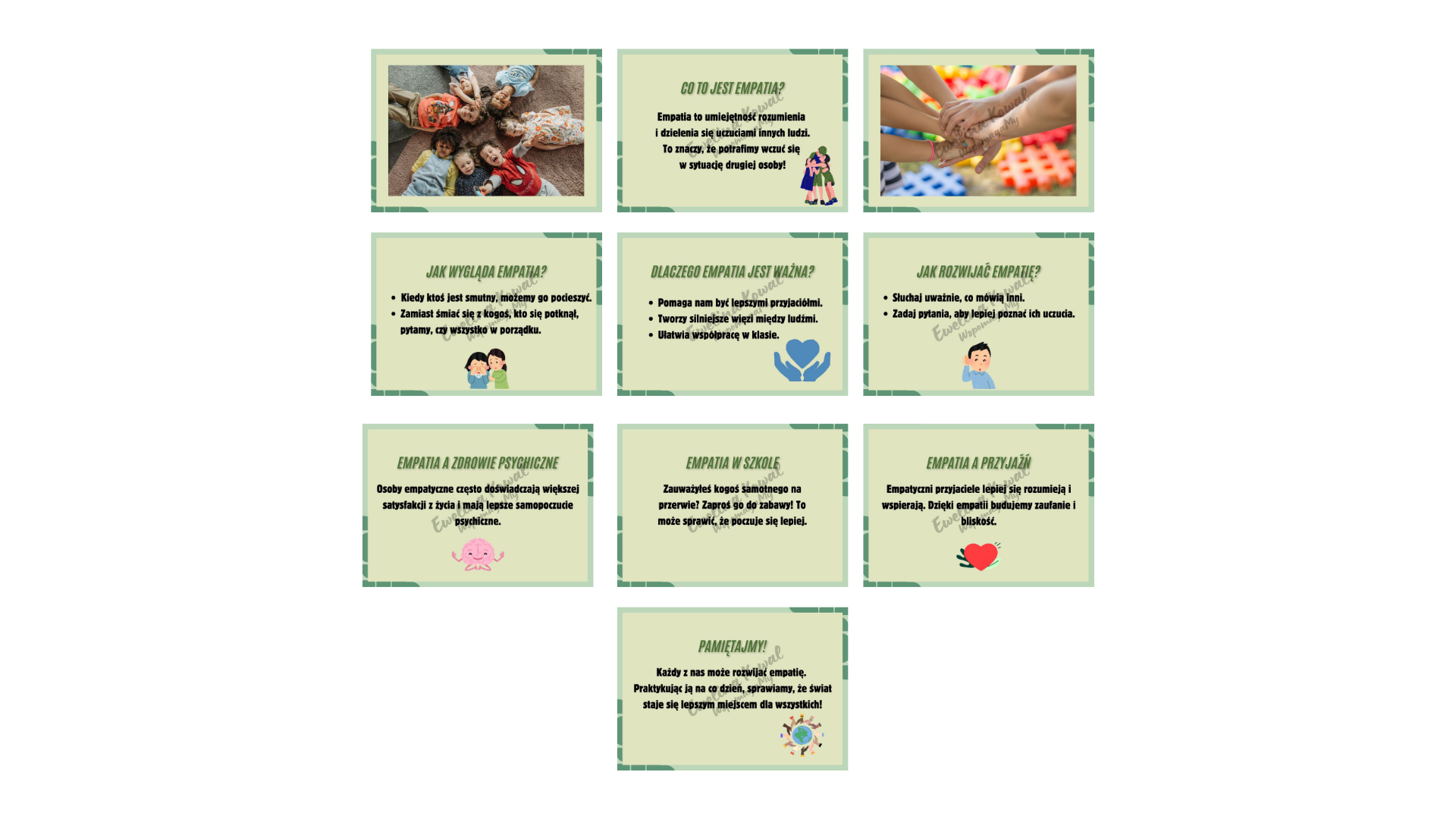 Cześć, przygotowałam dla Was piękną, przejrzystą gazetkę na temat EMPATII. Ważny temat, który mogą podjąć psycholodzy, pedagodzy, wychowawcy.