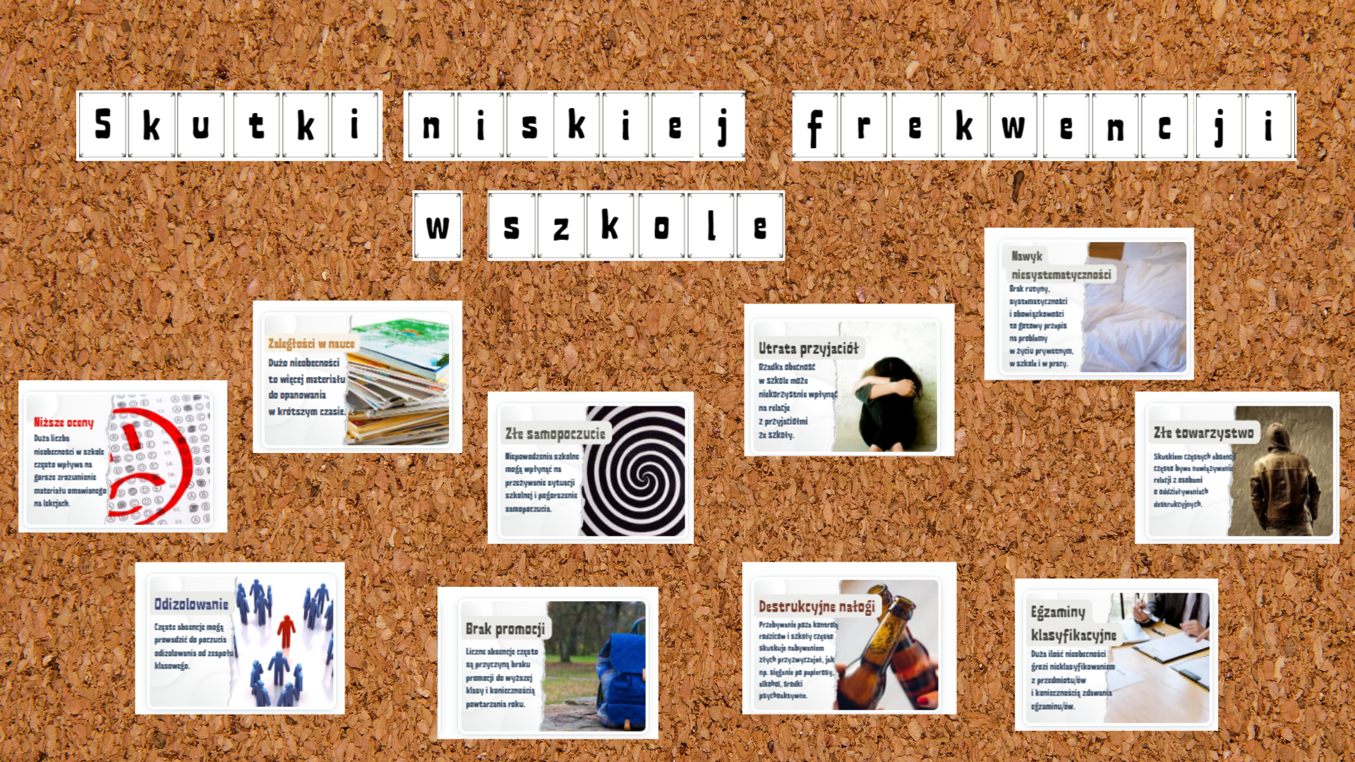 Skutki niskiej frekwencji w szkole: https://zlotynauczyciel.pl/downloads/gazetka-szkolna-na-temat-skutkow-niskiej-frekwencji-uczniow-w-szkole-prezentacja-gratis/