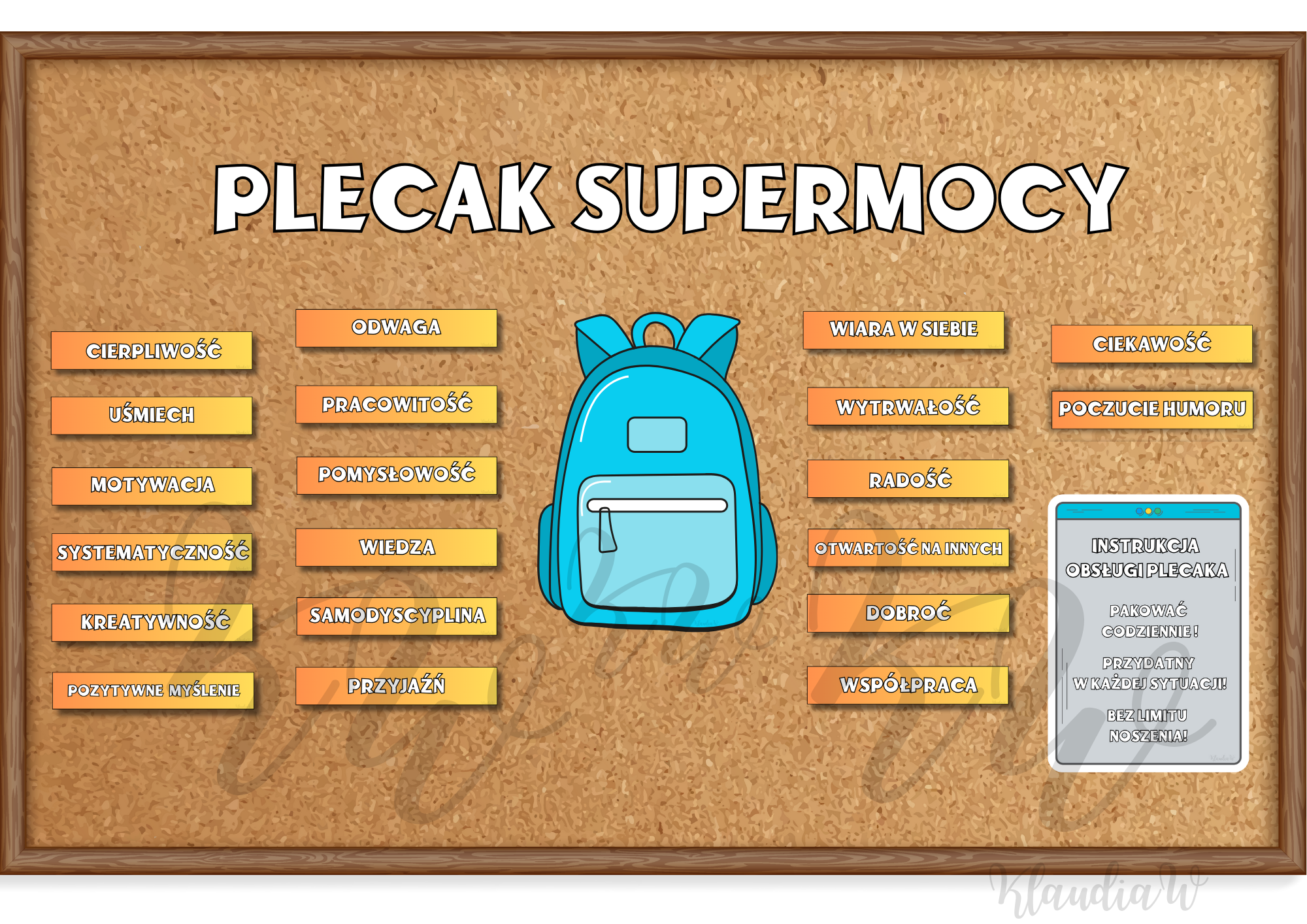 "PLECAK SUPERMOCY" przypomina uczniom, jakie wyjątkowe cechy mają w sobie. Pomysłowość, odwaga, cierpliwość, poczucie humoru czy wiara w siebie - to tylko część "ekwipunku", który każdy może zabrać ze sobą na co dzień do szkoły i poza nią.