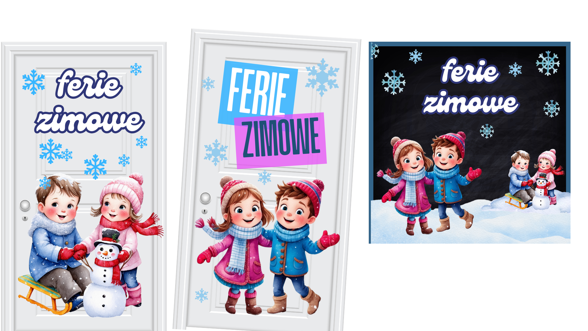 - Ozdoby na tablicę szkolną, na drzwi, okna z motywem zimy