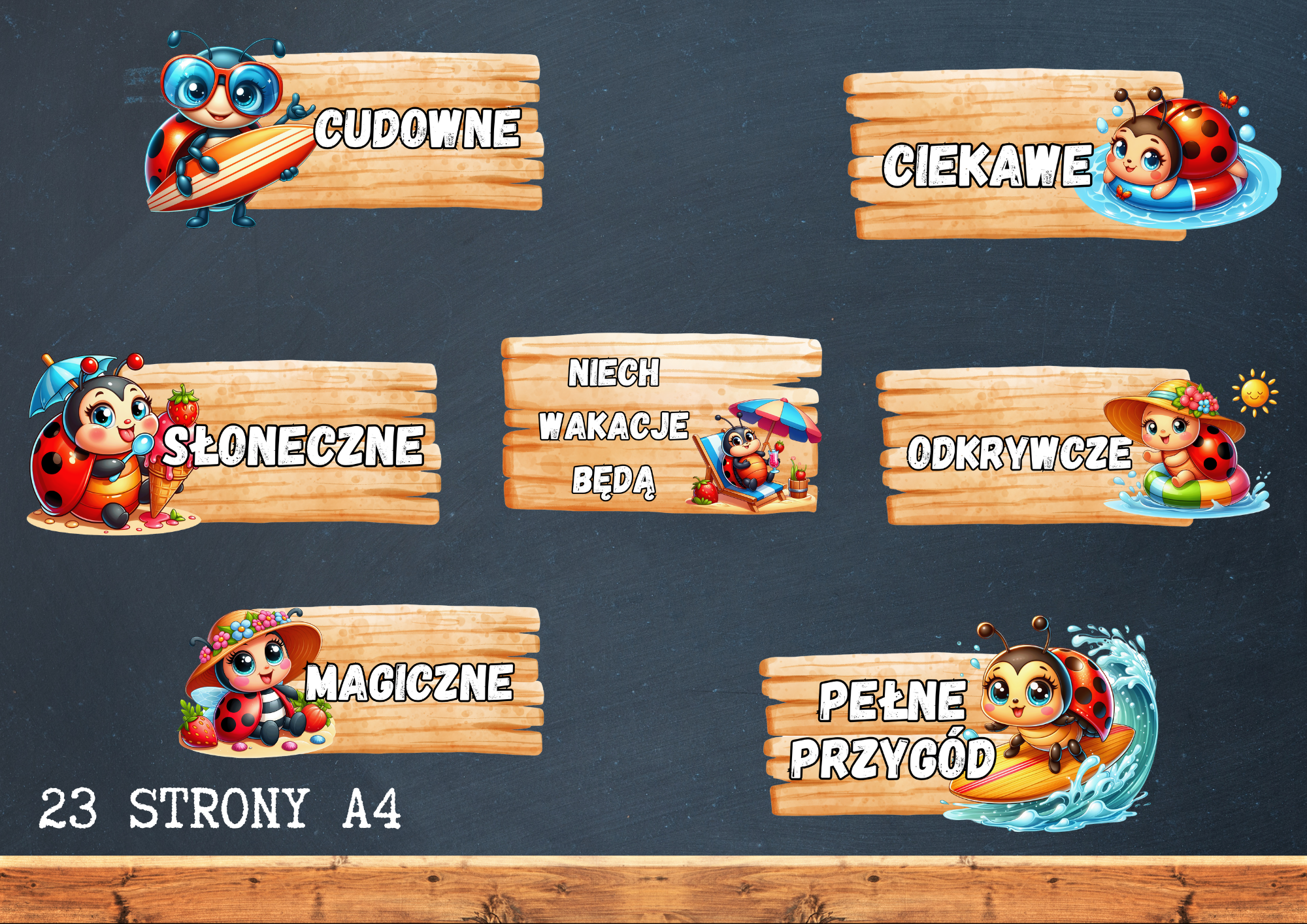 – jedna grafika (tabliczka z napisem i biedronkami) na A4,