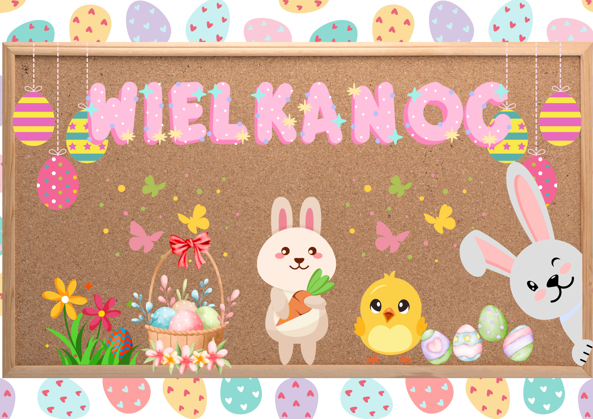 Plik PDF składa się z grafik w formacie A4, większe postacie (kurczak, zajączki) składają się z 4xA4